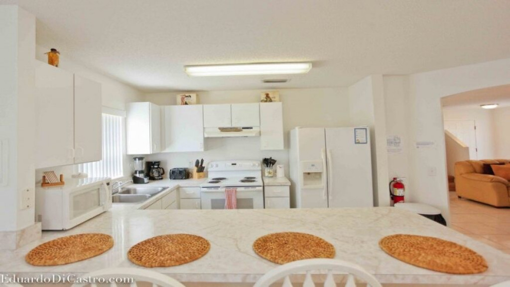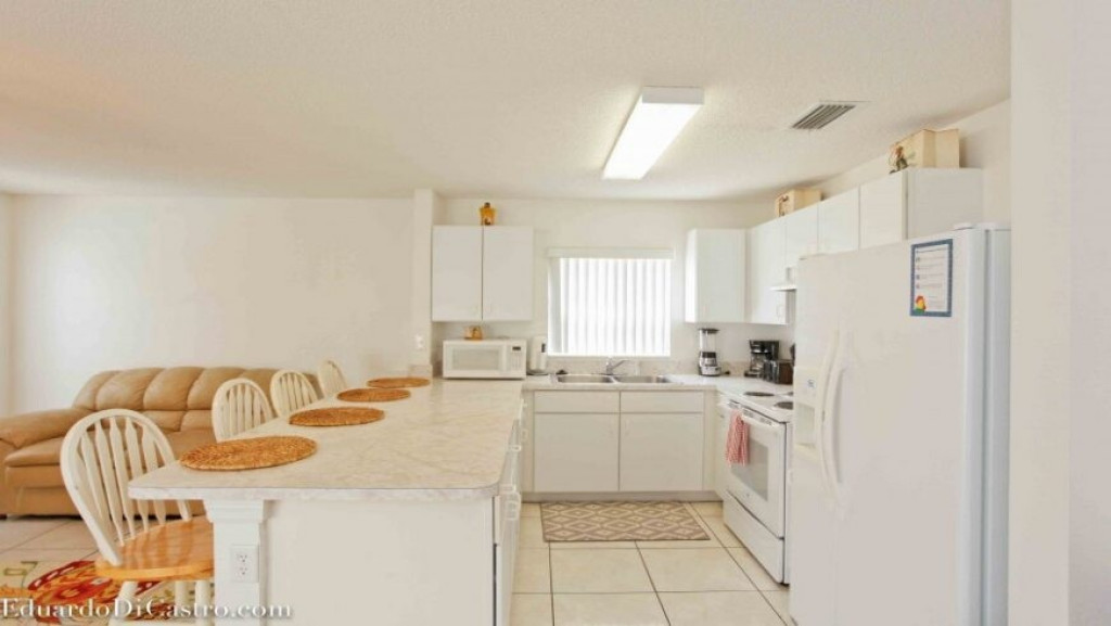 A cozinha americana, totalmente equipada com máquina de lavar pratos, micro-ondas, geladeira com freezer, fogão com forno, cafeteira, liquidificador etc, enfim todos os utensílios domésticos necessários.