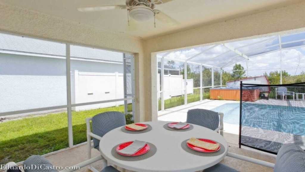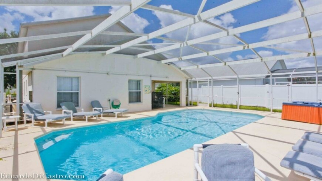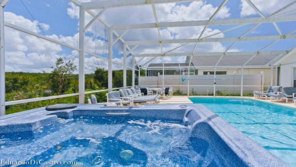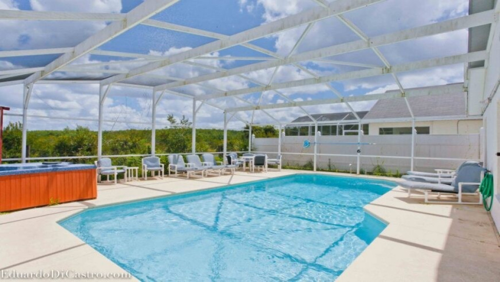 Máquina de lavar roupas e secar roupas, garagem para dois carros; sala de estar com vista para a piscina. A piscina com uma área coberta possui mesas e cadeiras para desfrutar bons momentos de lazer.