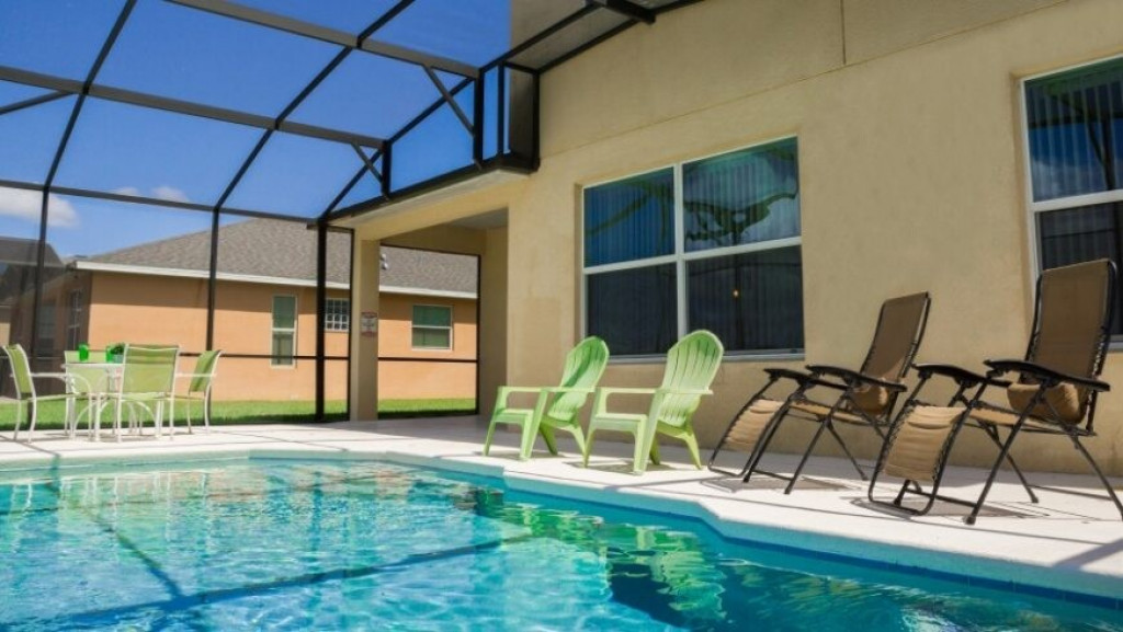 Máquina de lavar roupas e secar roupas, garagem para dois carros; sala de estar com vista para a piscina. A piscina com uma área coberta possui mesas e cadeiras para desfrutar bons momentos de lazer.