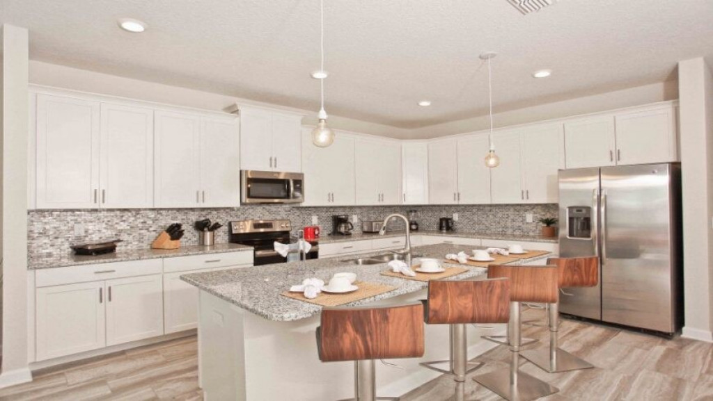 A cozinha americana, totalmente equipada com máquina de lavar pratos, micro-ondas, geladeira com freezer, fogão com forno, cafeteira, liquidificador etc, enfim todos os utensílios domésticos necessários.