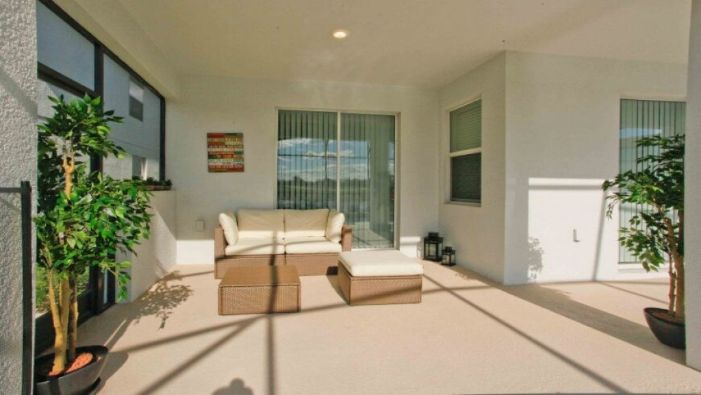 Máquina de lavar roupas e secar roupas, garagem para dois carros; sala de estar com vista para a piscina. A piscina com uma área coberta possui mesas e cadeiras para desfrutar bons momentos de lazer.