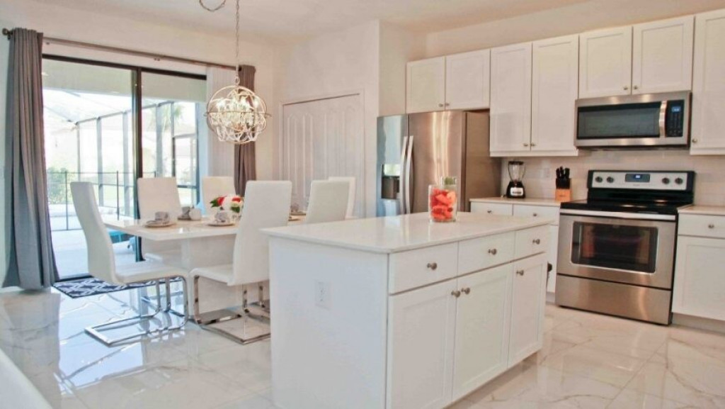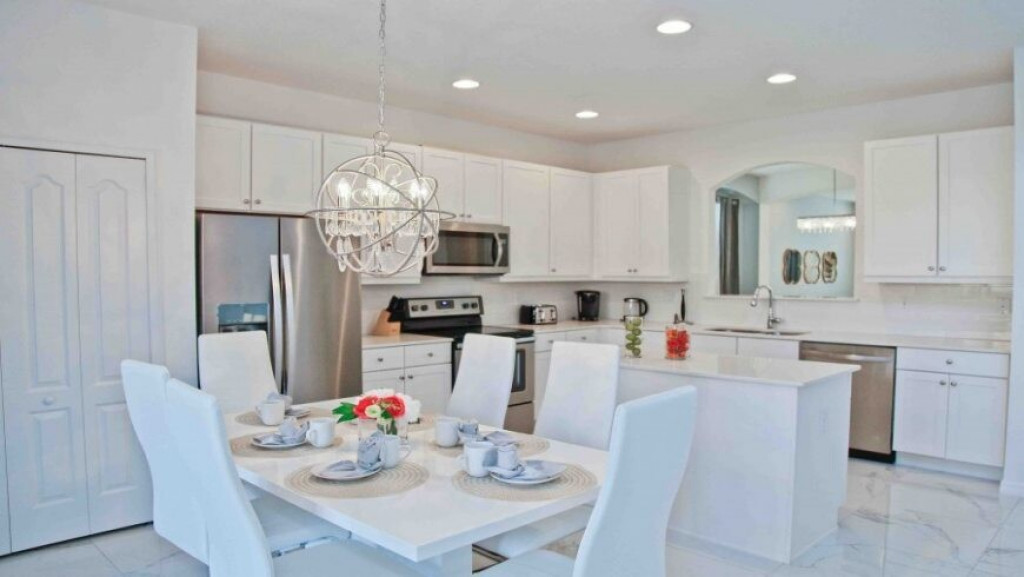 A cozinha americana, totalmente equipada com máquina de lavar pratos, micro-ondas, geladeira com freezer, fogão com forno, cafeteira, liquidificador etc, enfim todos os utensílios domésticos necessários.