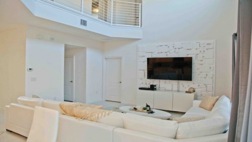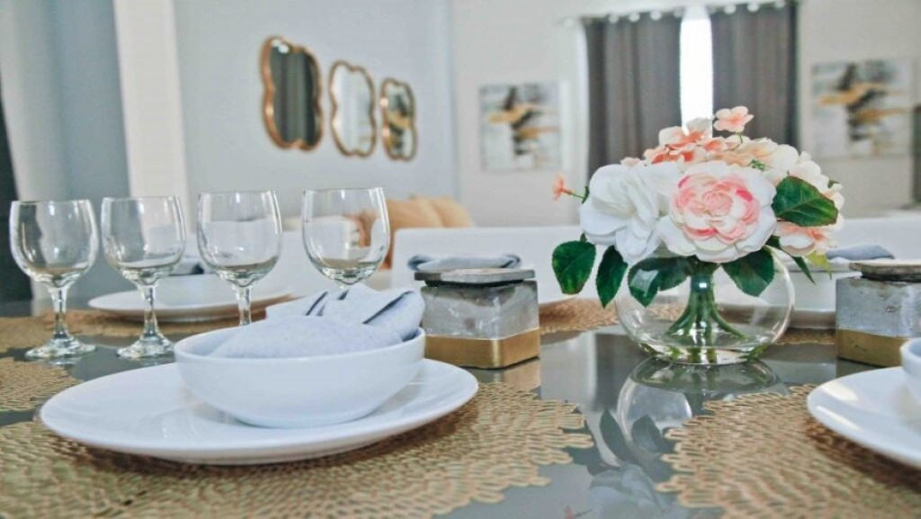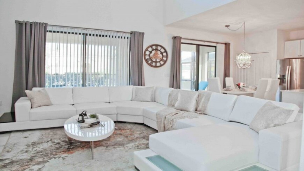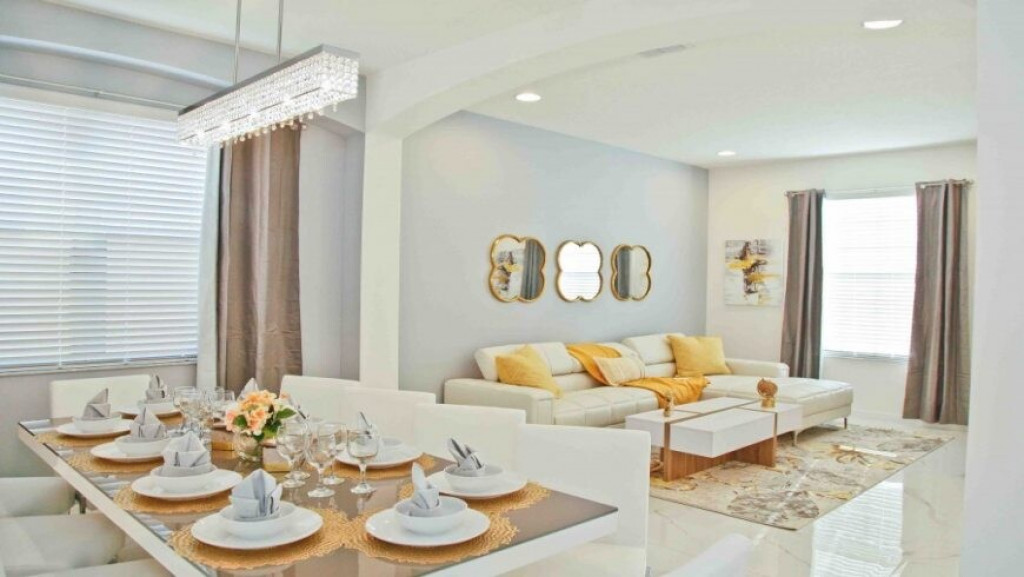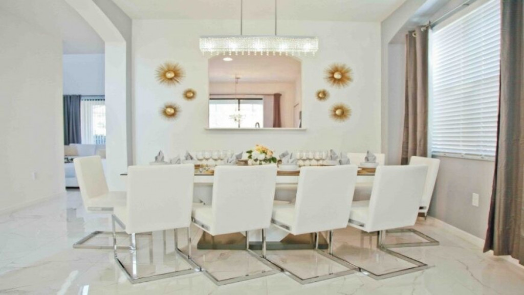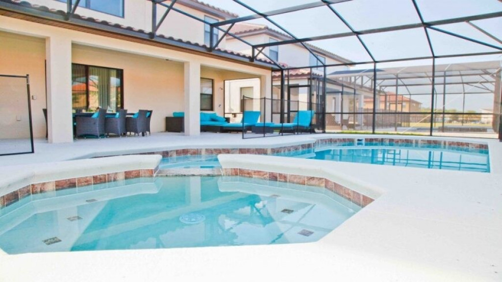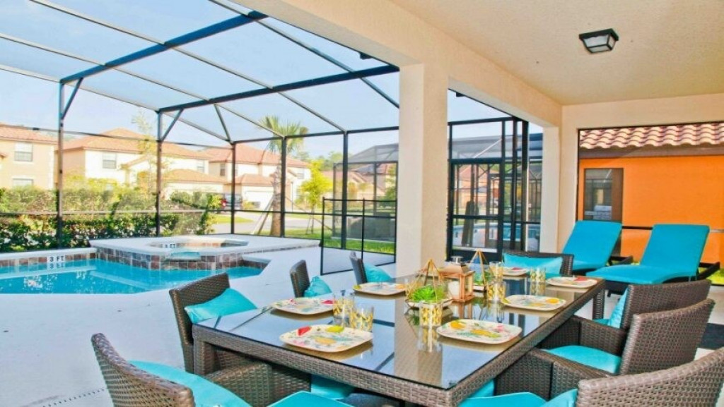 Máquina de lavar roupas e secar roupas, garagem para dois carros; sala de estar com vista para a piscina. A piscina com uma área coberta possui mesas e cadeiras para desfrutar bons momentos de lazer.