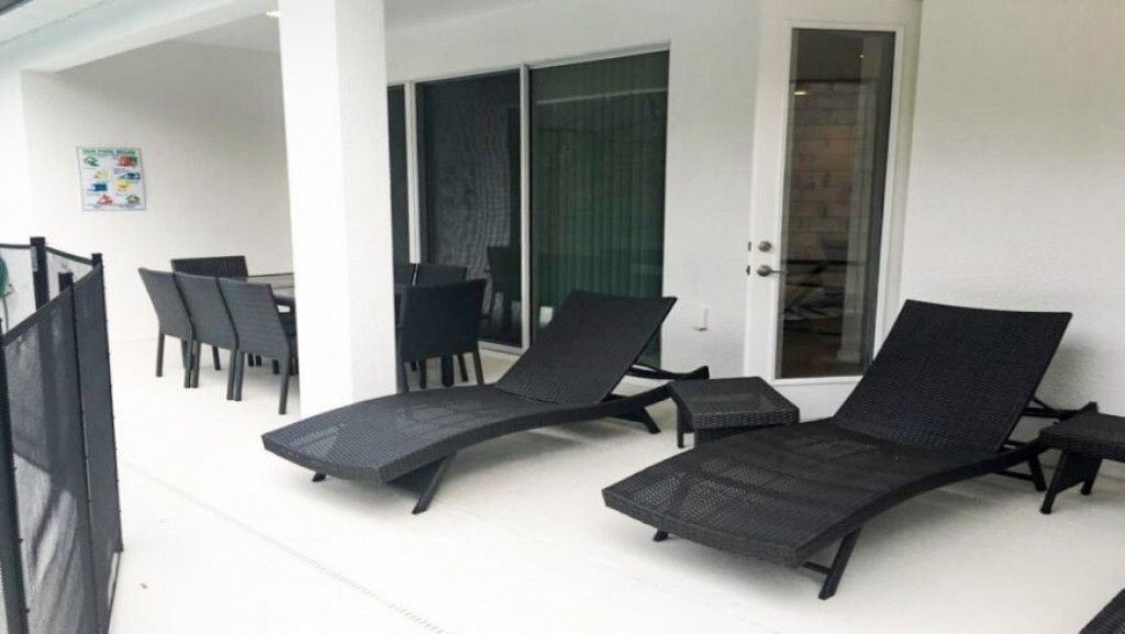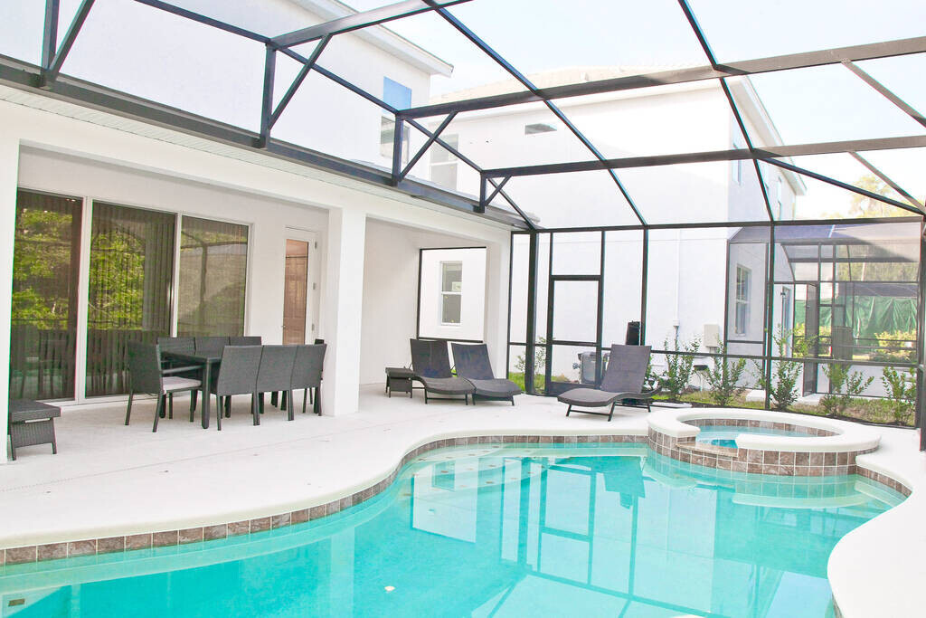Máquina de lavar roupas e secar roupas, garagem para dois carros; sala de estar com vista para a piscina. A piscina com uma área coberta possui mesas e cadeiras para desfrutar bons momentos de lazer.