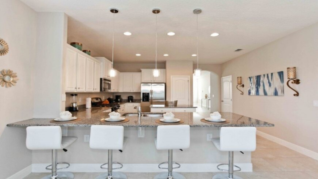 A cozinha americana, totalmente equipada com máquina de lavar pratos, micro-ondas, geladeira com freezer, fogão com forno, cafeteira, liquidificador etc, enfim todos os utensílios domésticos necessários.