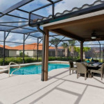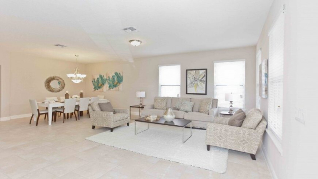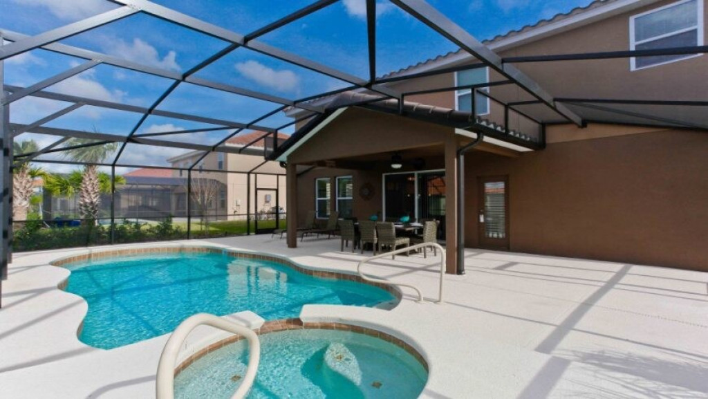 Máquina de lavar roupas e secar roupas, garagem para dois carros; sala de estar com vista para a piscina. A piscina com uma área coberta possui mesas e cadeiras para desfrutar bons momentos de lazer.