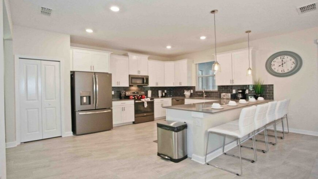 A cozinha americana, totalmente equipada com máquina de lavar pratos, micro-ondas, geladeira com freezer, fogão com forno, cafeteira, liquidificador etc, enfim todos os utensílios domésticos necessários.