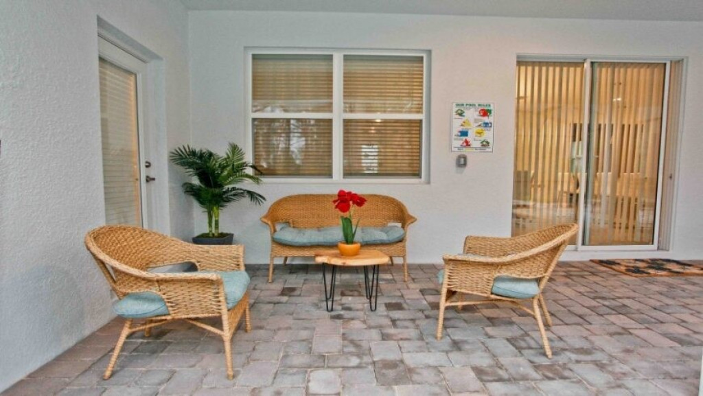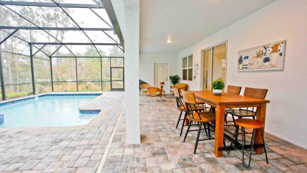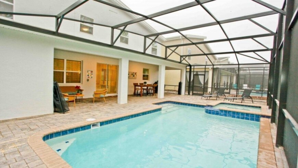 Máquina de lavar roupas e secar roupas, garagem para dois carros; sala de estar com vista para a piscina. A piscina com uma área coberta possui mesas e cadeiras para desfrutar bons momentos de lazer.