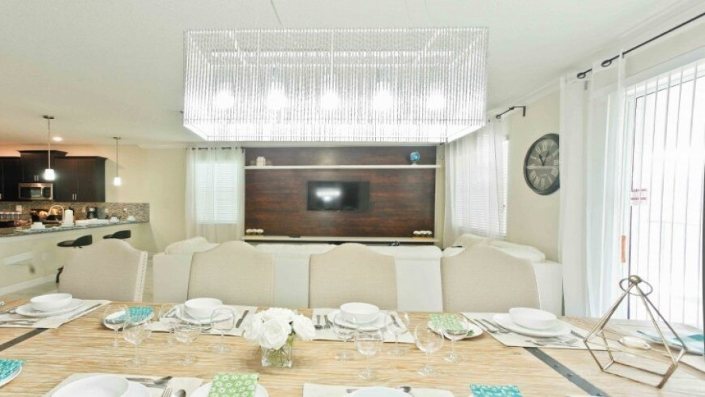 Máquina de lavar roupas e secar roupas, garagem para dois carros; sala de estar com vista para a piscina. A piscina com uma área coberta possui mesas e cadeiras para desfrutar bons momentos de lazer.