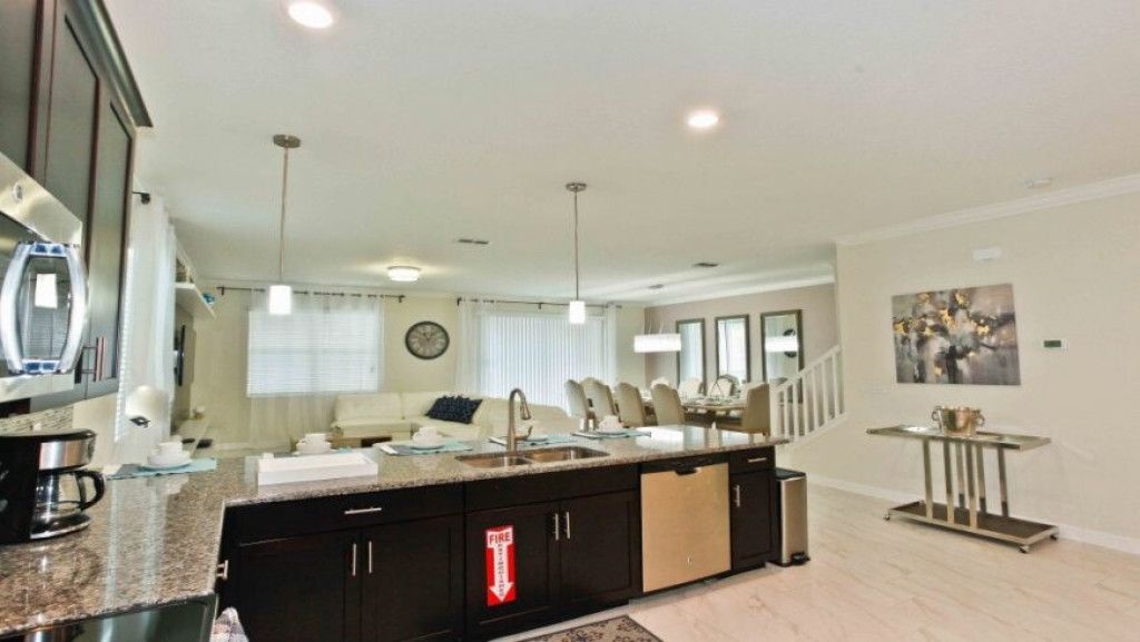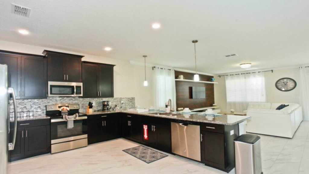 A cozinha americana, totalmente equipada com máquina de lavar pratos, micro-ondas, geladeira com freezer, fogão com forno, cafeteira, liquidificador etc, enfim todos os utensílios domésticos necessários.