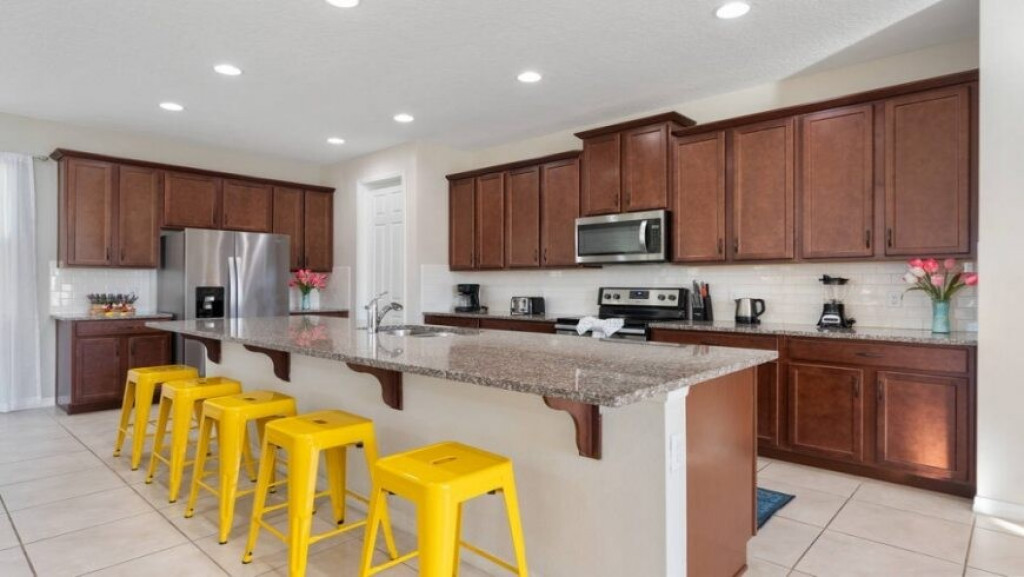 A cozinha americana, totalmente equipada com máquina de lavar pratos, micro-ondas, geladeira com freezer, fogão com forno, cafeteira, liquidificador etc, enfim todos os utensílios domésticos necessários.