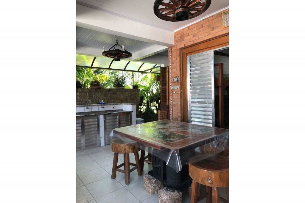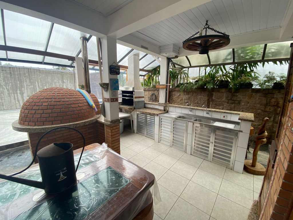 Itens disponíveis na casa para uso durante a hospedagem: Micro-ondas. Área de lazer com churrasqueira, forno de pizza e geladeira. Máquina de lavar roupas e secadora. Ampla sala de TV e cozinha americana, com todos os utensílios. 2 banheiros são suítes (quarto de casal e de solteiro), 1 banheiro social e 1 banheiro na área lazer e 1 lavabo