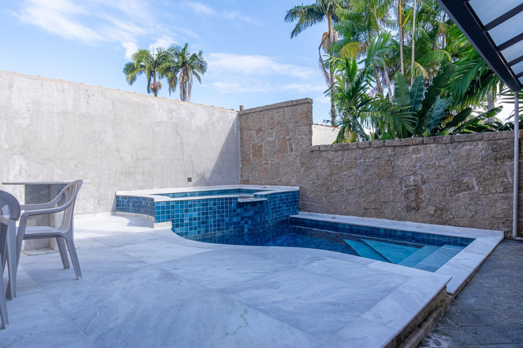 É alugada somente a parte térrea da casa, sendo a parte de cima de uso exclusivo do proprietário. São casas totalmente independentes, que compartilham somente a piscina.