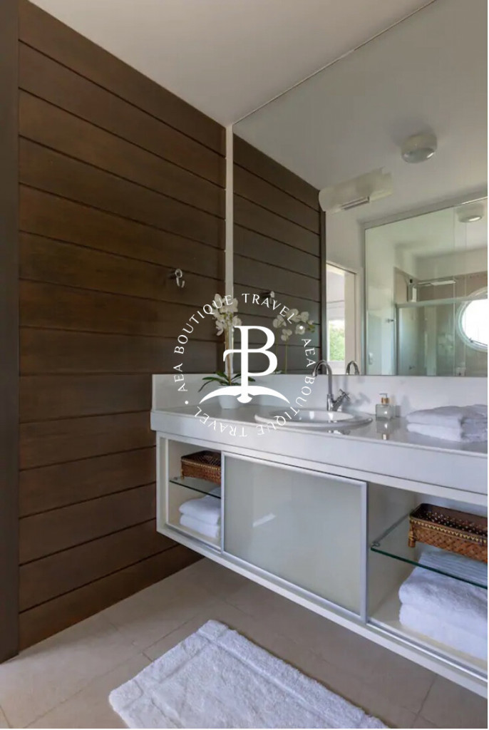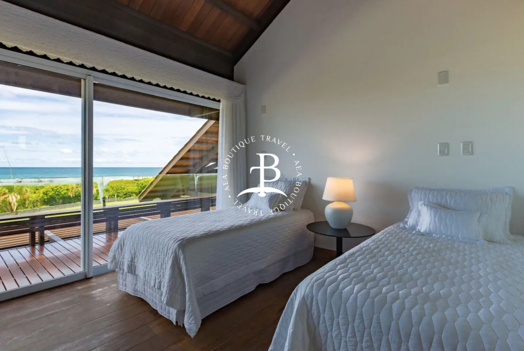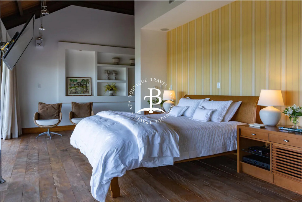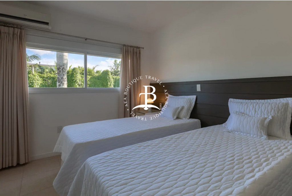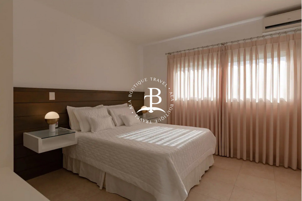 Conheça as acomodações e suas distribuições: quarto 1: Suíte Máster 1 (cama) ‘king’ 2,00 m x 2,30 m, com banheira e ducha dupla, closet, varanda com vista para o mar. Quarto 2: suíte com 1 cama queen size, varanda e vista mar. Quarto 3: suíte com 2 camas box queen (que se podem unir), varanda e vista mar. Quarto 4: suíte com 1 cama queen size. Quarto 5: suíte com 2 camas box queen (que se podem unir). Quarto 6: 1 Demi suíte com 1 cama queen size e banheiro compartilhado com, Quarto 7: 1 Demi suíte com 1 cama queen size.
