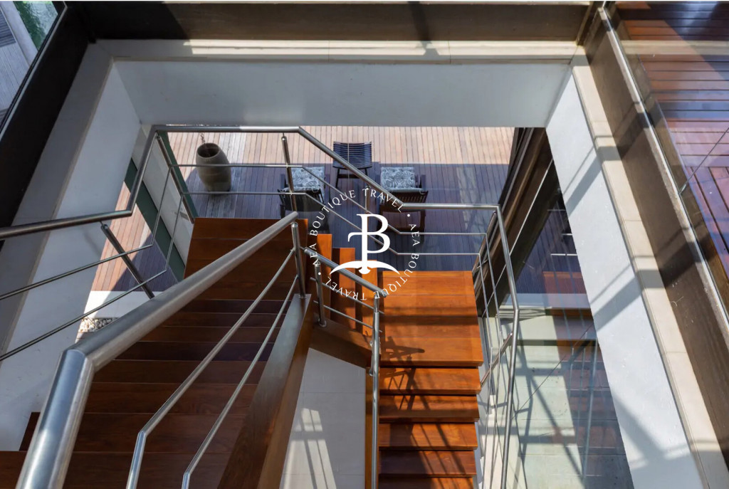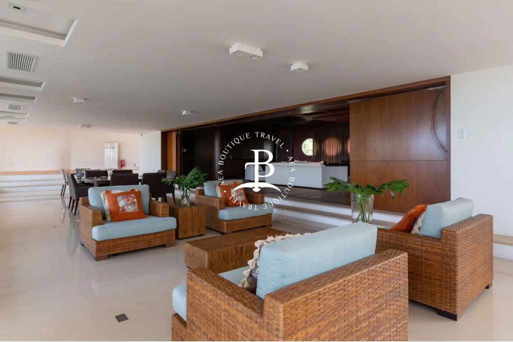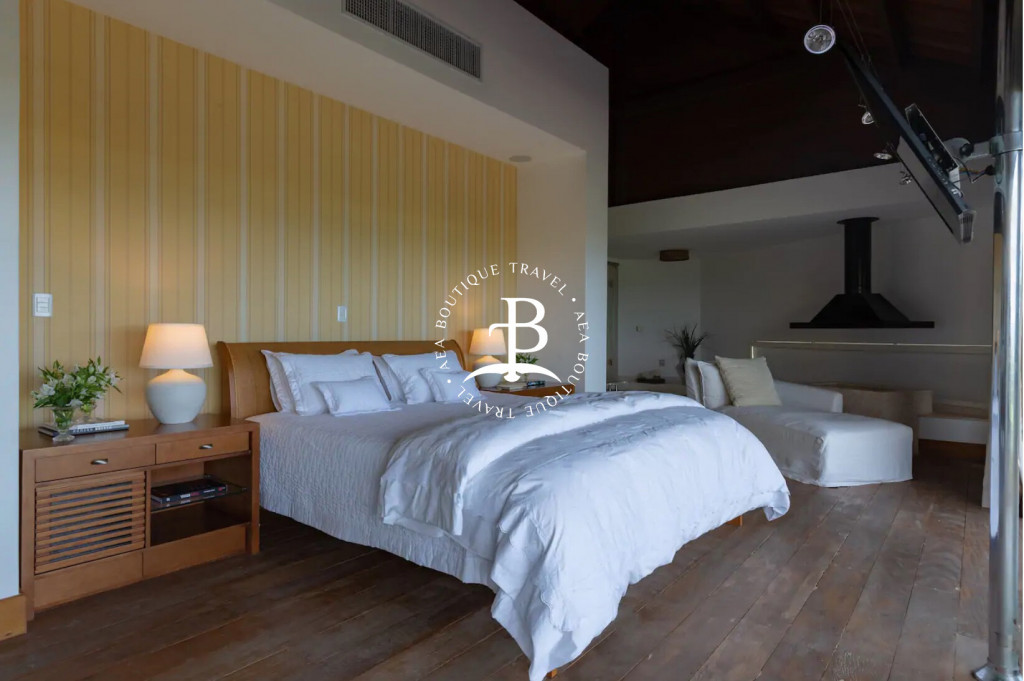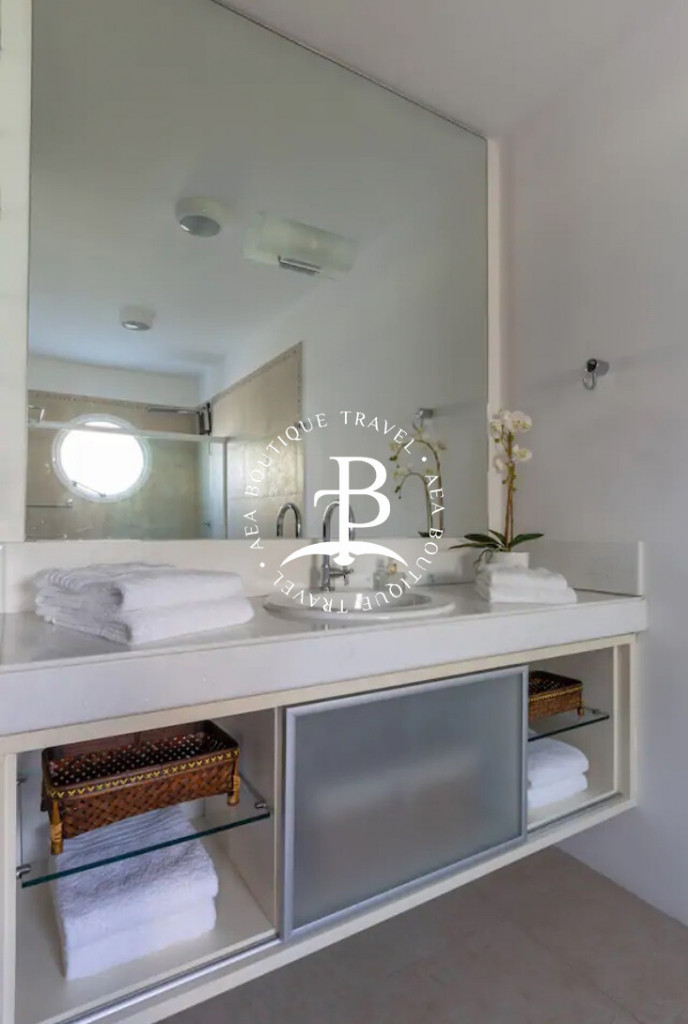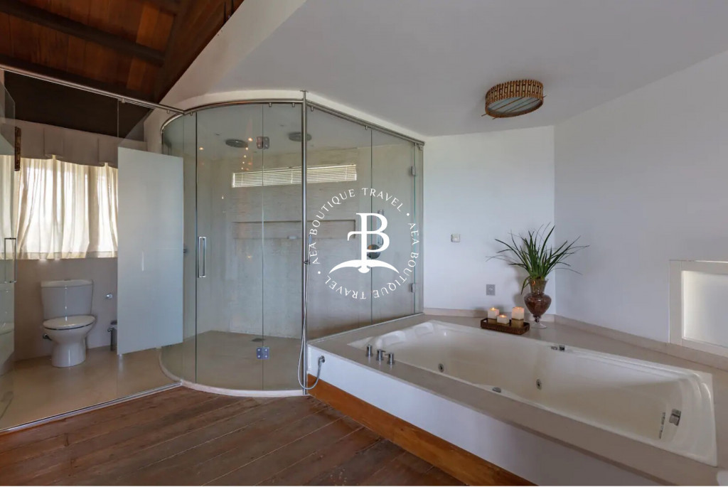 Conheça as acomodações e suas distribuições: quarto 1: Suíte Máster 1 (cama) ‘king’ 2,00 m x 2,30 m, com banheira e ducha dupla, closet, varanda com vista para o mar. Quarto 2: suíte com 1 cama queen size, varanda e vista mar. Quarto 3: suíte com 2 camas box queen (que se podem unir), varanda e vista mar. Quarto 4: suíte com 1 cama queen size. Quarto 5: suíte com 2 camas box queen (que se podem unir). Quarto 6: 1 Demi suíte com 1 cama queen size e banheiro compartilhado com, Quarto 7: 1 Demi suíte com 1 cama queen size.