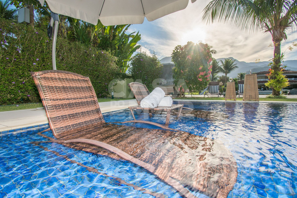 A Villa Los Roques e uma casa espetacular, localizada no Condomínio Frade.Linda Villa, com cinco suítes, completíssima, com duas salas de estar, sala de TV, sala de jantar, e cozinha completa com todos os utensílios.Todas as suítes com ar condicionado, roupas de cama e banho de excelente padrão.Área externa lindíssima, com piscina, espreguiçadeiras, umbrelone, sauna, e uma vista encantadora. A casa fica localizada no canal, com acesso direto a saída de lancha ao mar.Excelente casa para quem busca conforto e descanso com a família e amigos.