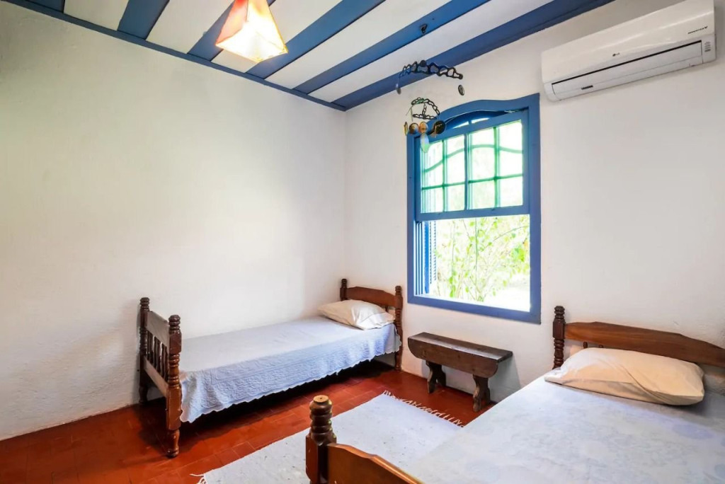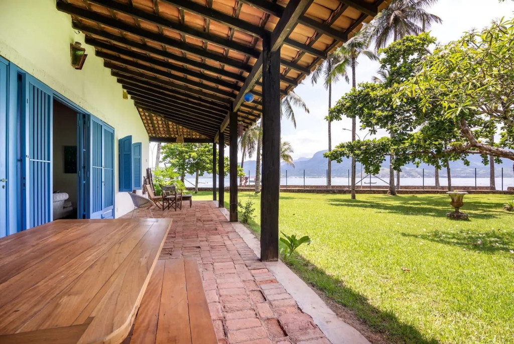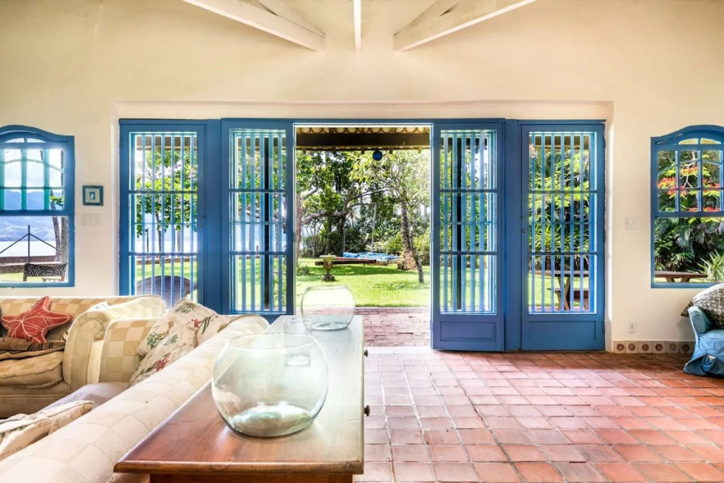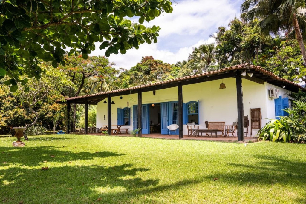 Excelente casa projetada por Paulo Mendes da Rocha frente ao mar e térrea. Com 4 quartos e 3 banheiros, tem um lindo jardim, um pequeno bosque e um riachinho que corta a divisa do terreno com muitas natureza. Localizada em Ilhabela, entre os bairros mais importantes, é afastada e portanto, silenciosa. A ciclovia e calçada frente ao mar são acessíveis pelo portão da praia, a Vila fica a 10min de bike. O wifi é de boa qualidade, pode-se trabalhar dali. Todos os quartos possuem ar-condicionado.