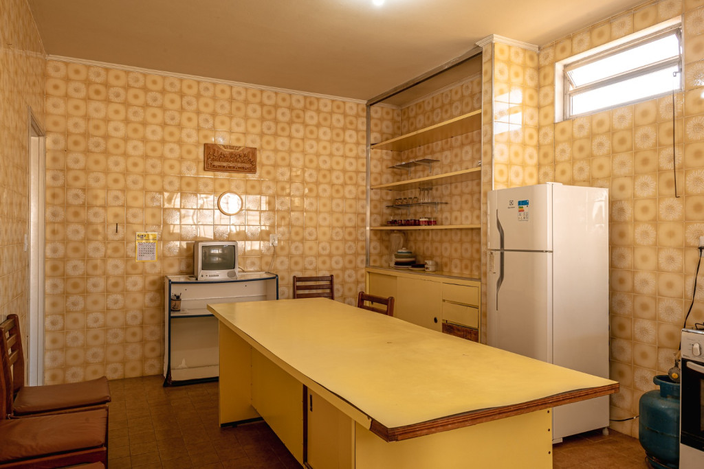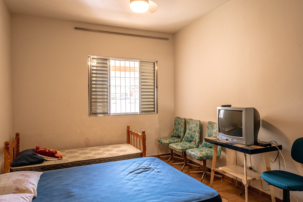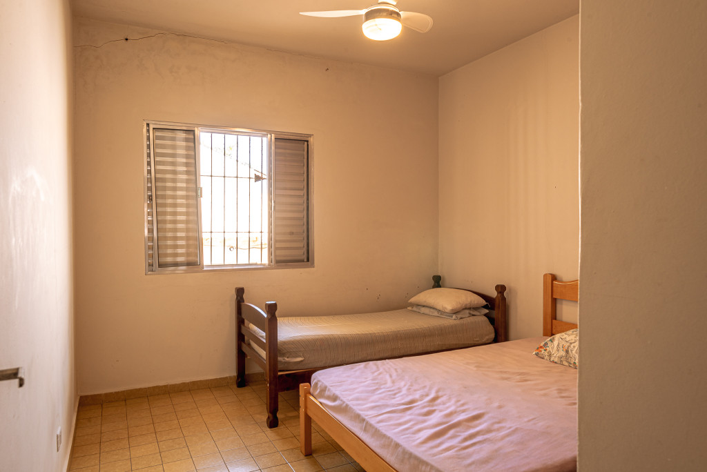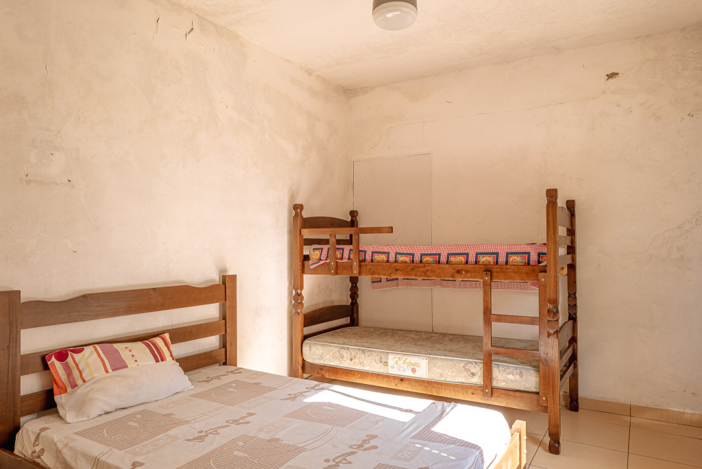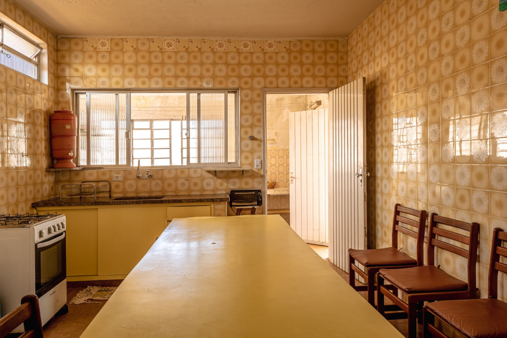 São 3 quartos grandes, 2 banheiros, sala grande, cozinha grande, churrasqueira, e uma edícula com mais um quarto suíte, uma saleta e mais uma cozinha.