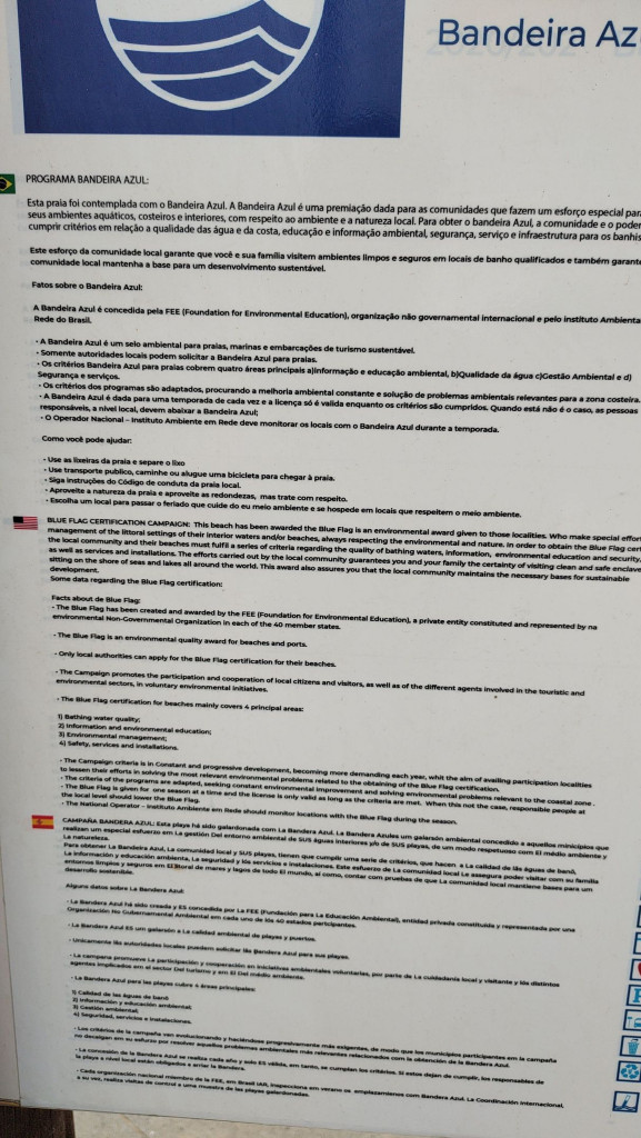 Praia reconhecimento internacional como BANDEIRA AZUL.