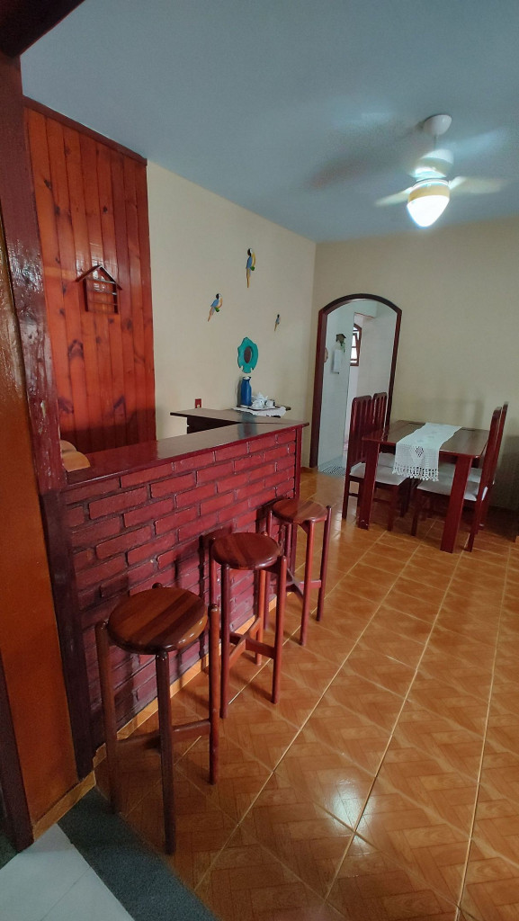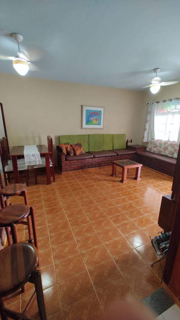 O espaço é grande e temos cama para até 7 pessoas mas temos 2 sofas de alvenaria que podem ser forrados de colchão para dormir em caso de curtas estadias.