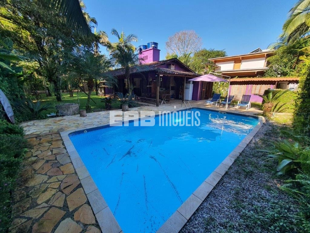 Casa com piscina, na praia de Itamambuca, sem luxo, mas com conforto. Destaque para a vegetação de Mata Atlântica ao redor, que traz frescor, ar puro e amoldura a paisagem.