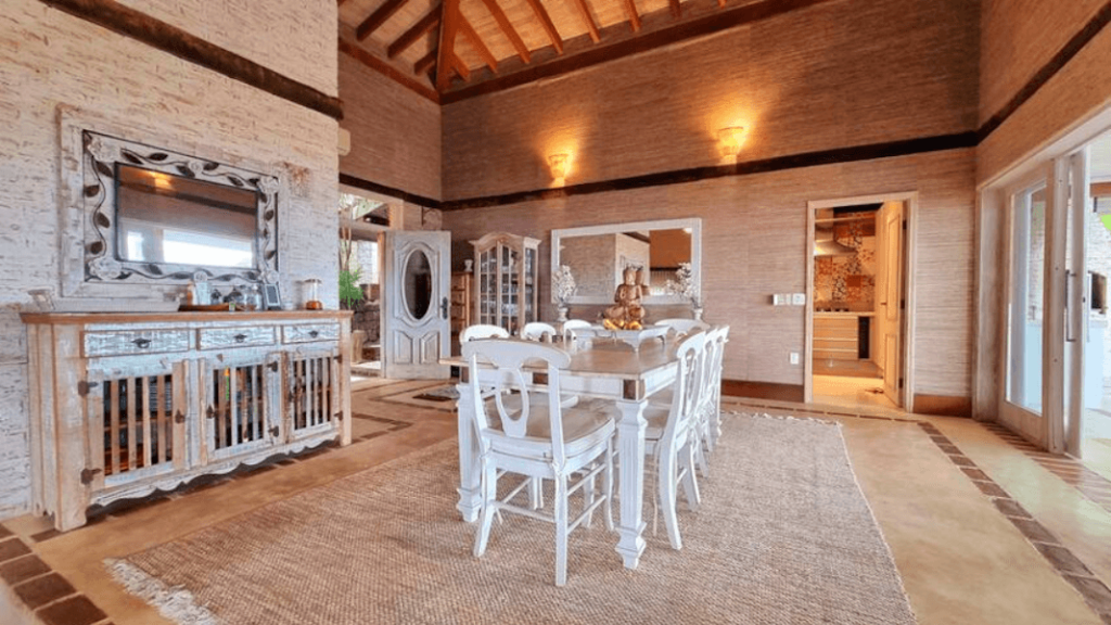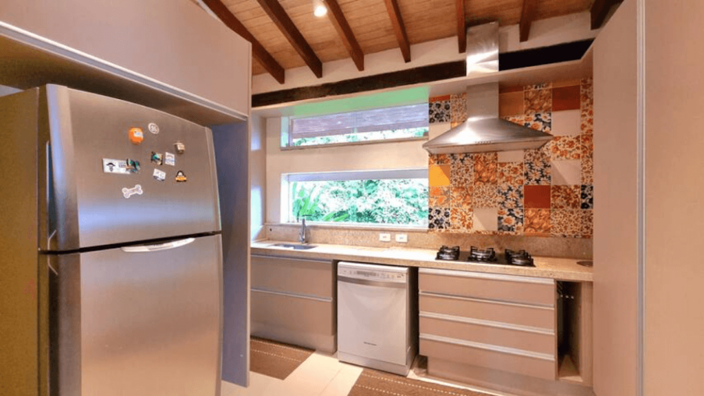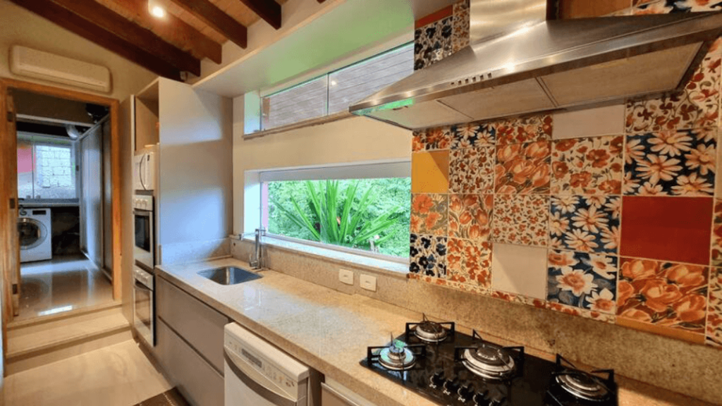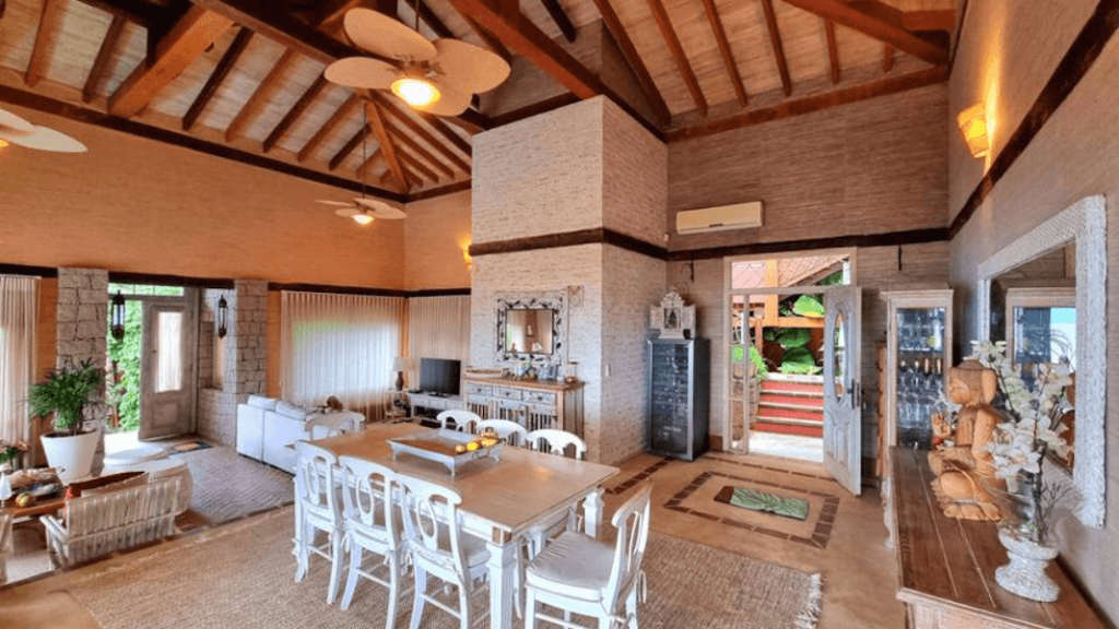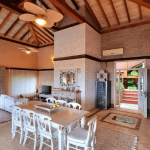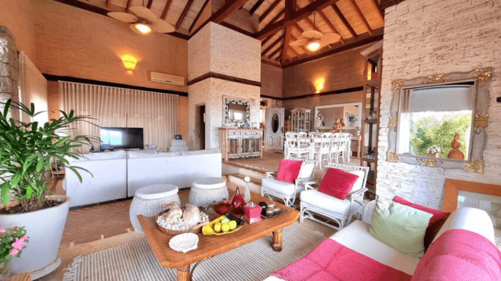 A casa é composta por quatro suítes que são reservadas da parte social, mantendo assim uma maior privacidade. Além de uma ampla área interna com sala de estar, com televisão, integrada com sala de jantar e com uma excelente cozinha com todos os utensílios e rede wi-fi que abrange toda casa .