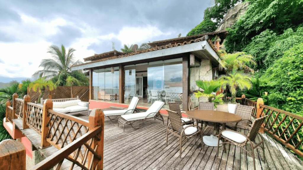 Excelente casa com vista de 180º graus para a praia. Um lugar onde a montanha encontra o mar, com um ambiente totalmente integrado para favorecer a beleza natural de Ilhabela.