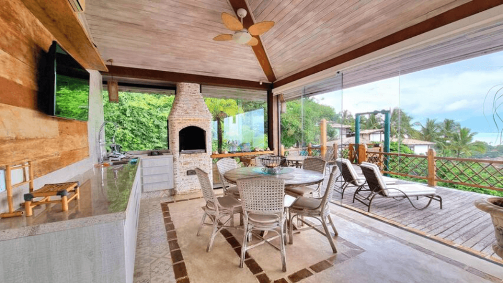 Uma ótima área Gourmet com churrasqueira que fica ao lado da piscina que tem uma vista espetacular do mar. O lugar ideal para apreciar o nascer e/ou pôr do sol. Momentos únicos que essa casa pode proporcionar a você e sua família.