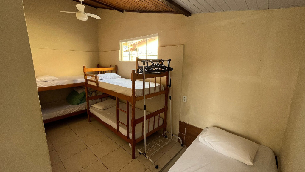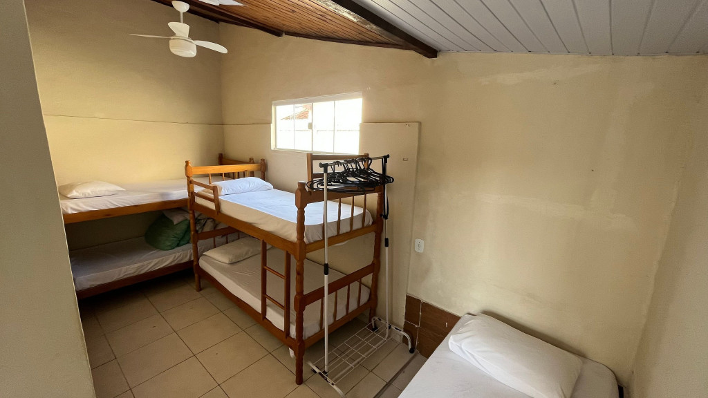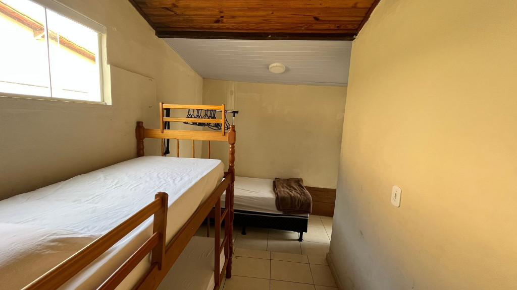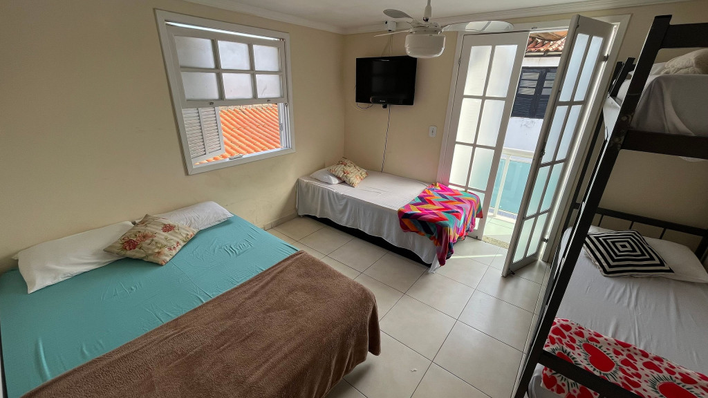Casa com 6 quartos, sendo duas suítes com ar-condicionado o restante com ventilador de teto, ampla cozinha com microondas e filtro de água, Sala ampla TV de Led de 42", lavabo, 3 vagas de garagem, churrasqueira, utensílios, máquina de lavar, localizada a 150 m da Praia Grande, próxima a supermercado, padaria, farmácia, salão de beleza, bares, lojas e restaurantes.