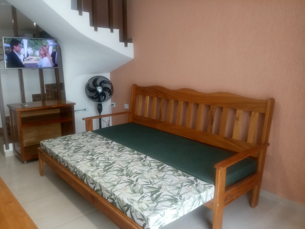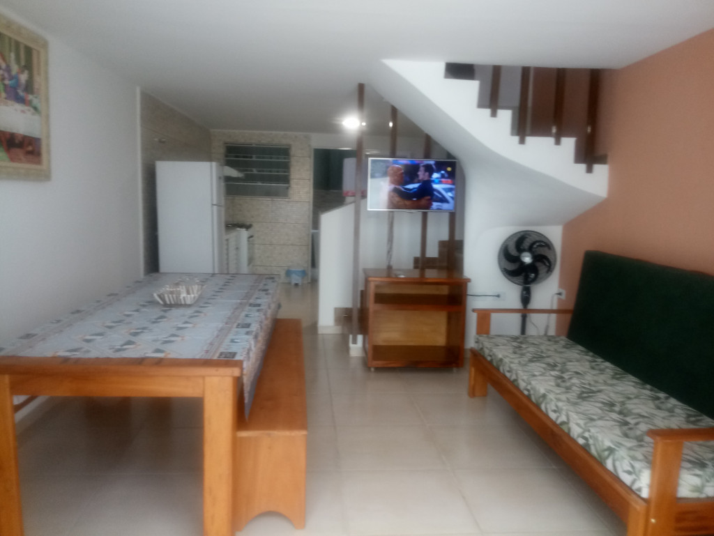 CASA ESTILO SOBRADO, PARTE SUPERIOR DOIS QUARTOS CADA QUARTO TEM UMA CAMA DE CASAL COM CAMA AUXILIAR E UM BELICHE, MAIS DOIS COLCHOES AVULSOS, UM BANHEIRO COMPLETO, PARTE INFERIOR, ÁREA CHURRASQUEIRA, BANHEIRO COMPLETO, COZINHA COM TODOS OS UTENSÍLIOS, SALA COM SOFÁ CAMA E MESA COM BANCOS GRANDES, DUCHA, UMA VAGA DE GARAGEM DESCOBERTA.
