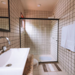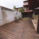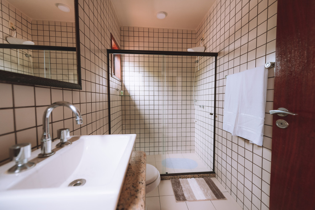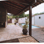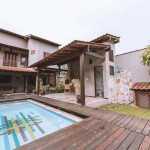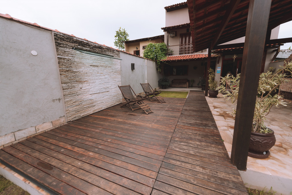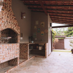 Existe um espaço gourmet com churrasqueira e pia, também tem um banheiro completo e um Chuveiro externo. Uma piscina privativa com dec removível que traz segurança para crianças e pets.