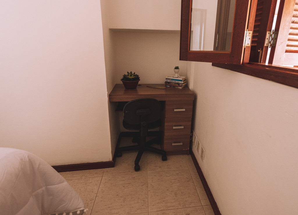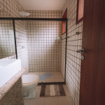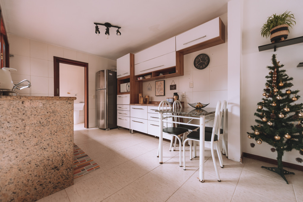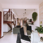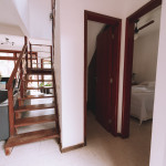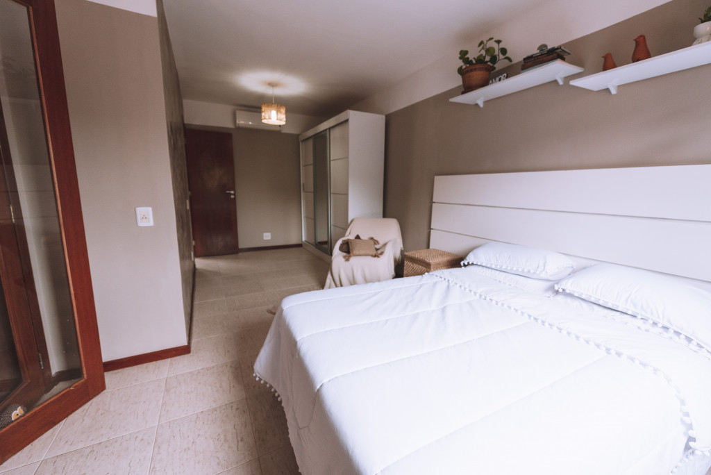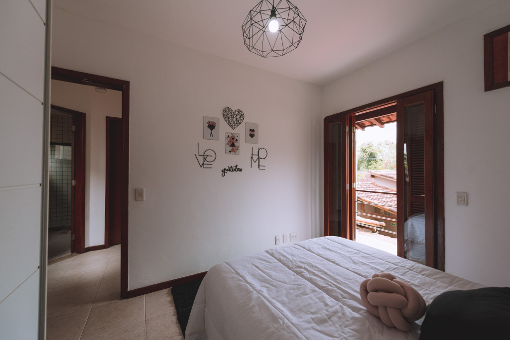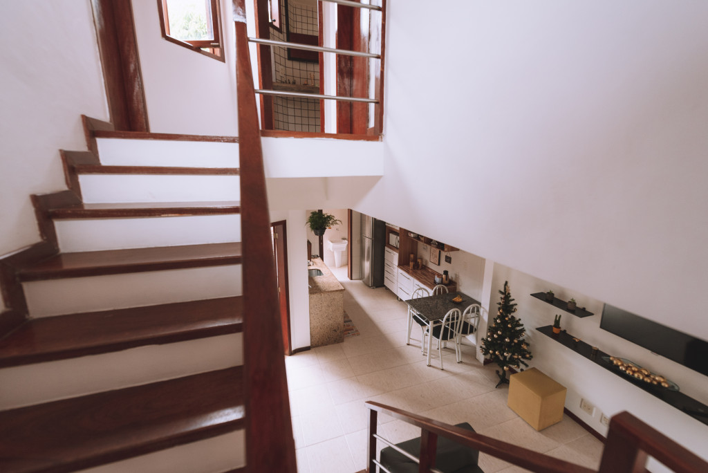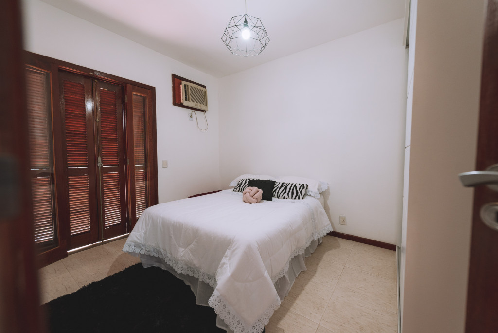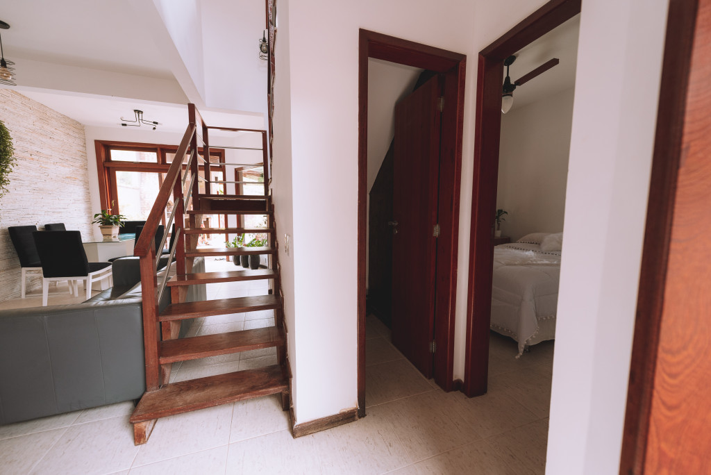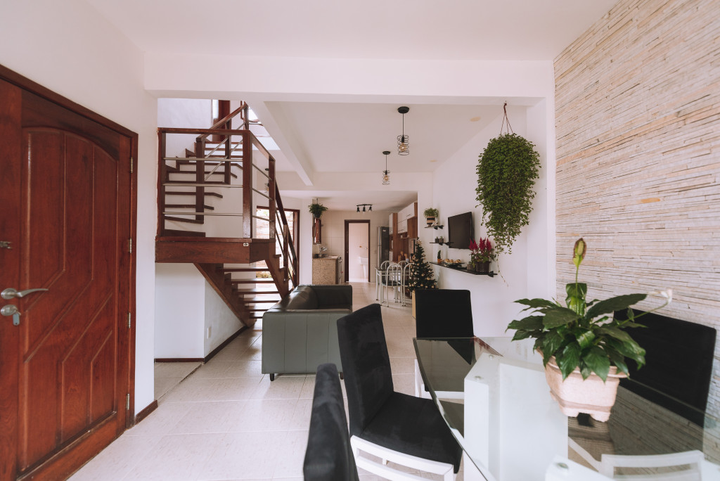 Na parte de baixo da casa temos a sala integrada a cozinha com Mesa de apoio e todos os utensílios necessários, a sala de estar onde se encontra uma Tv de 42 polegadas, e uma mesa de jantar com 6 cadeiras, tem um lavabo, área de serviço e uma pequena área externa, a suíte da casa fica no andar de baixo com um closet com armário e espelho, uma cama de casal, um espaço home office com um ventilador de teto. No andar de cima temos dois quartos, um deles bem amplo com armário, cama de casal , uma cama de solteiro, no outro tem uma cama de casal e um armário, ambos tem ar condicionado, um banheiro atendendo os dois quartos e uma pequena varanda .