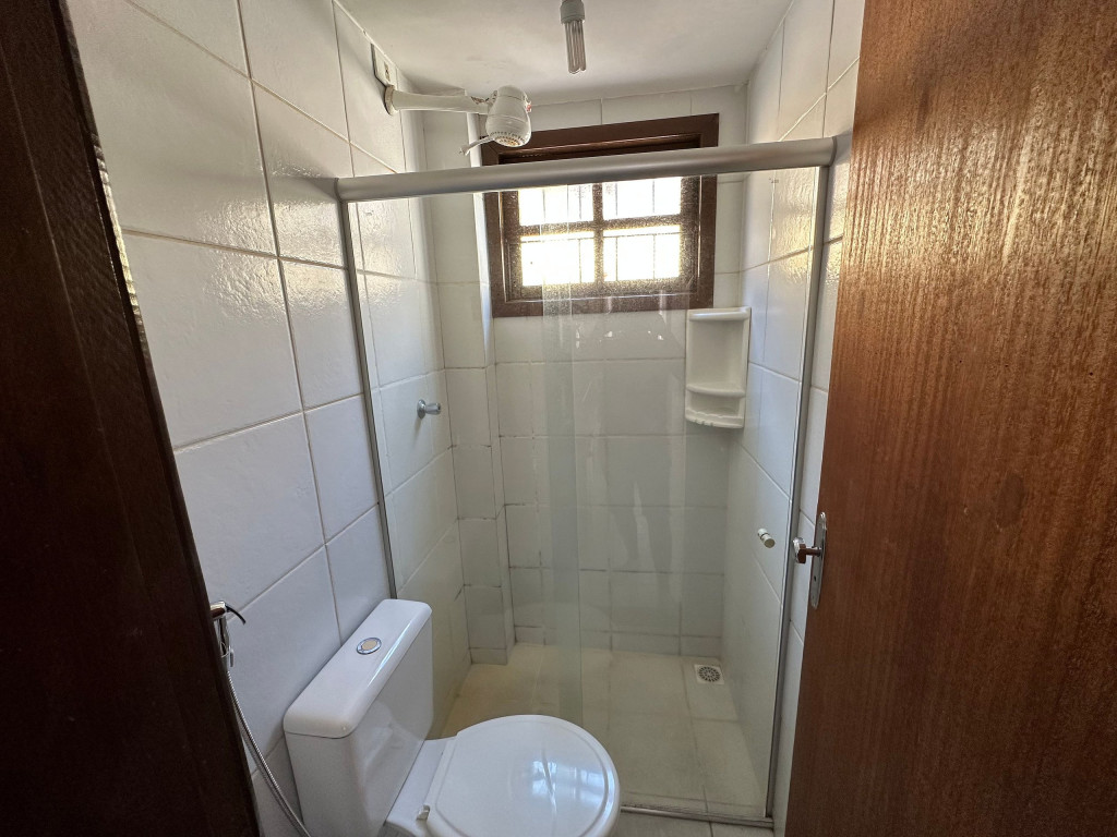 A casa dispõe de 3 banheiros, sendo 1 em cada suítes com chuveiros de aquecimento solar, e 1 banheiro social com chuveiro elétrico.