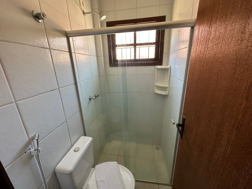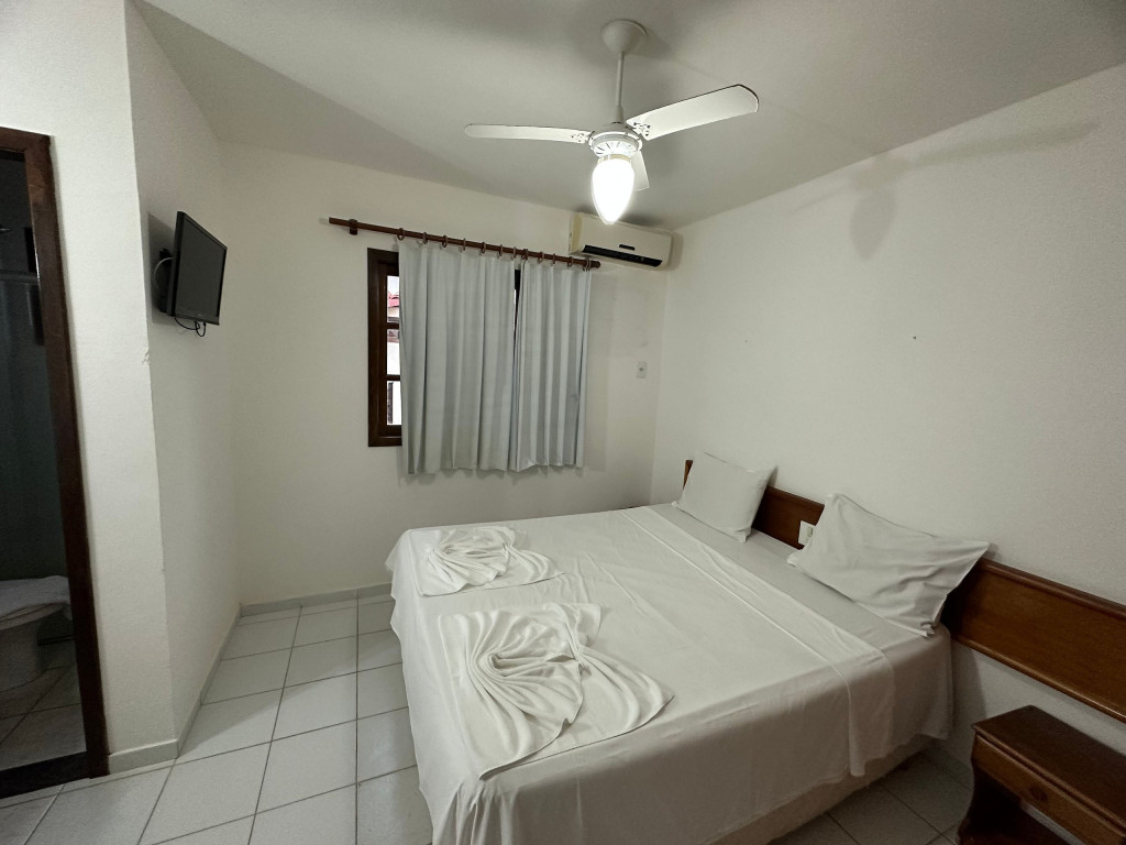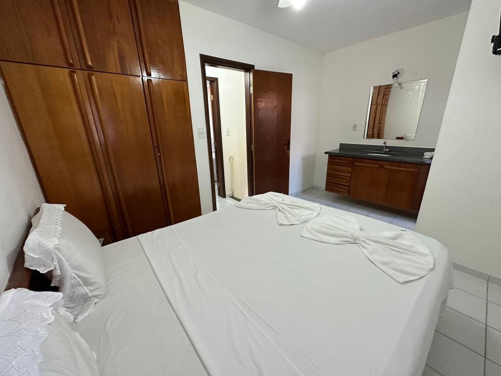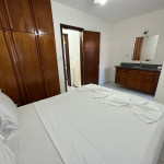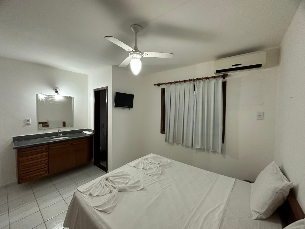 A primeira suíte possui ar-condicionado, ventilador de teto , 01 cama de casal, travesseiros, . Oferecemos o enxoval de cama e banho. No quarto você ainda terá um roupeiro para armazenar suas bagagens.