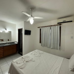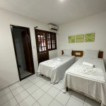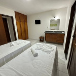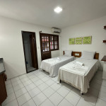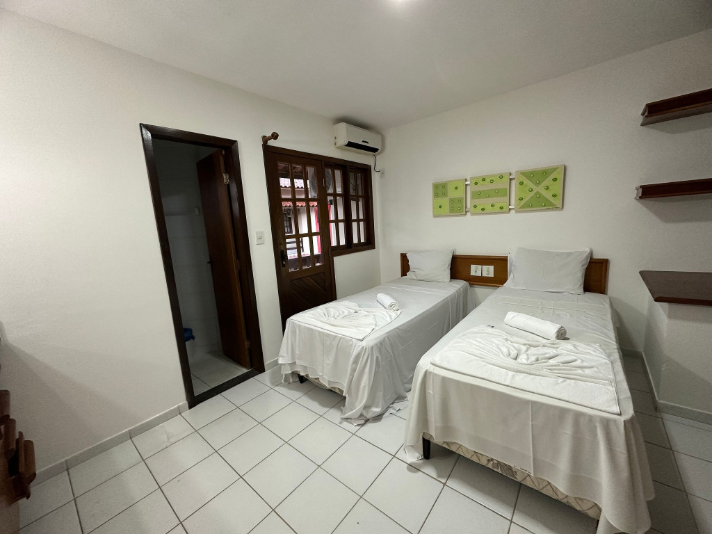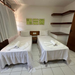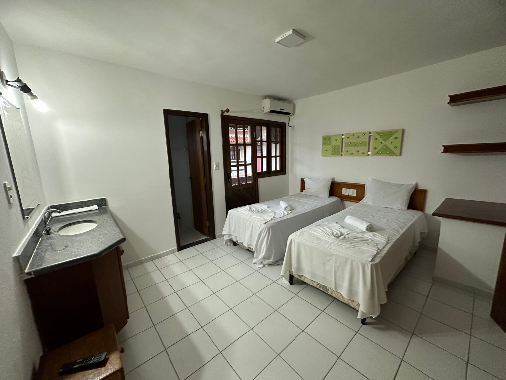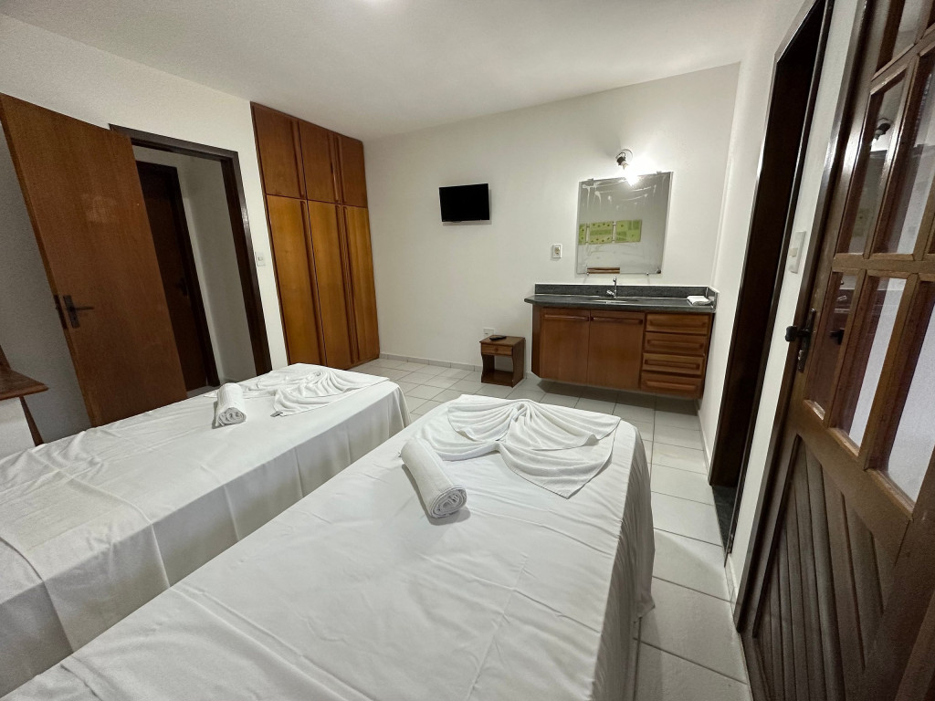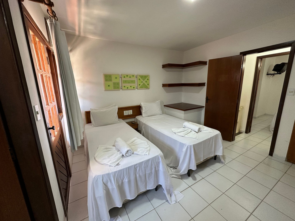 A primeira suíte possui ar-condicionado, ventilador de teto , 01 cama de casal, travesseiros, . Oferecemos o enxoval de cama e banho. No quarto você ainda terá um roupeiro para armazenar suas bagagens.