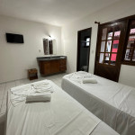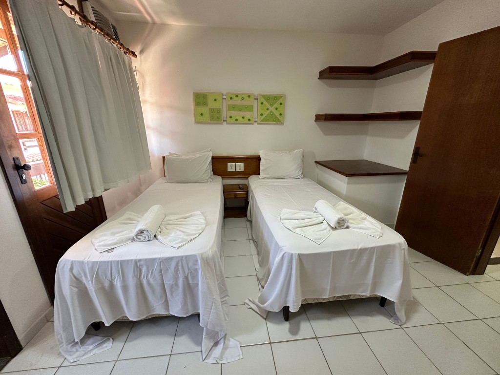 1 cama de casal com 2 camas auxiliares de solteiro, travesseiros ,enxoval de cama e banho, roupeiro para armazenar duas bagagens.