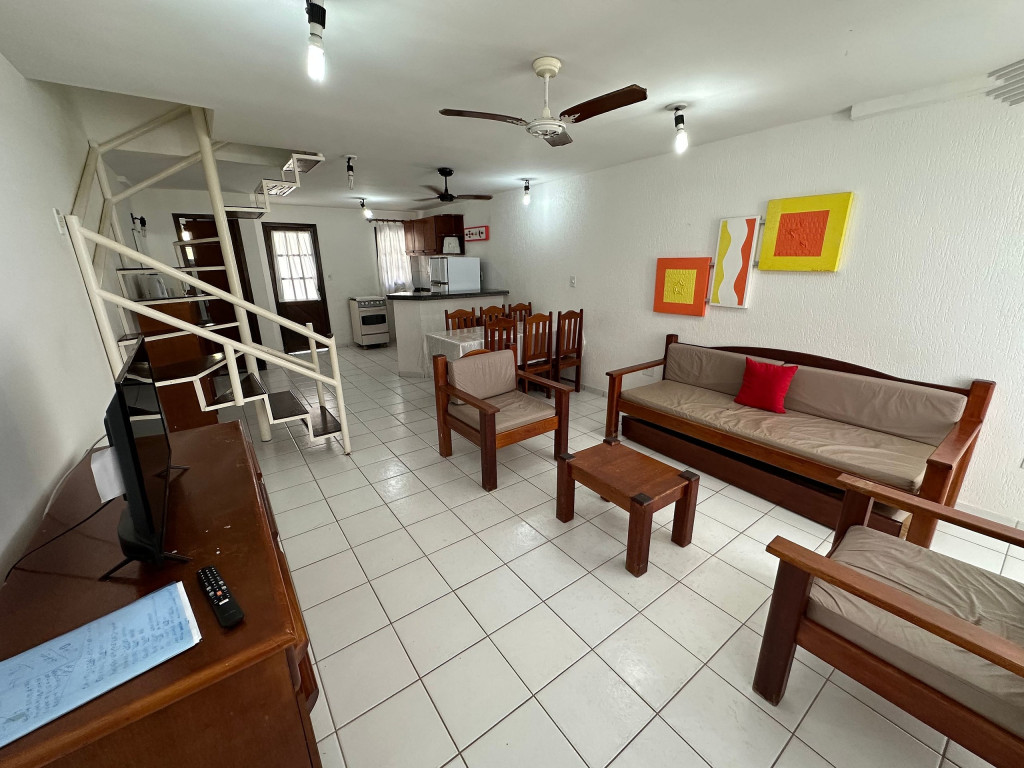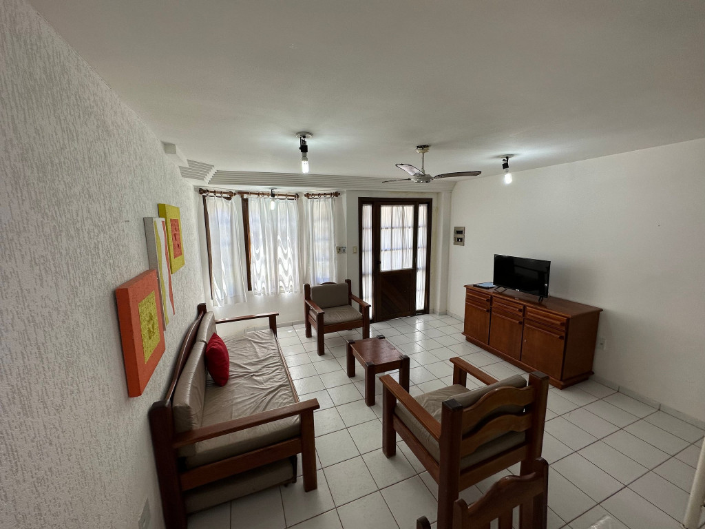 A Casa em condomínio situado a poucos metros da praia de Taperapuã. Possui 1 vaga de estacionamento gratuito, dentro do condomínio, logo a frente da casa. Casa ampla com 90m² de área construída.