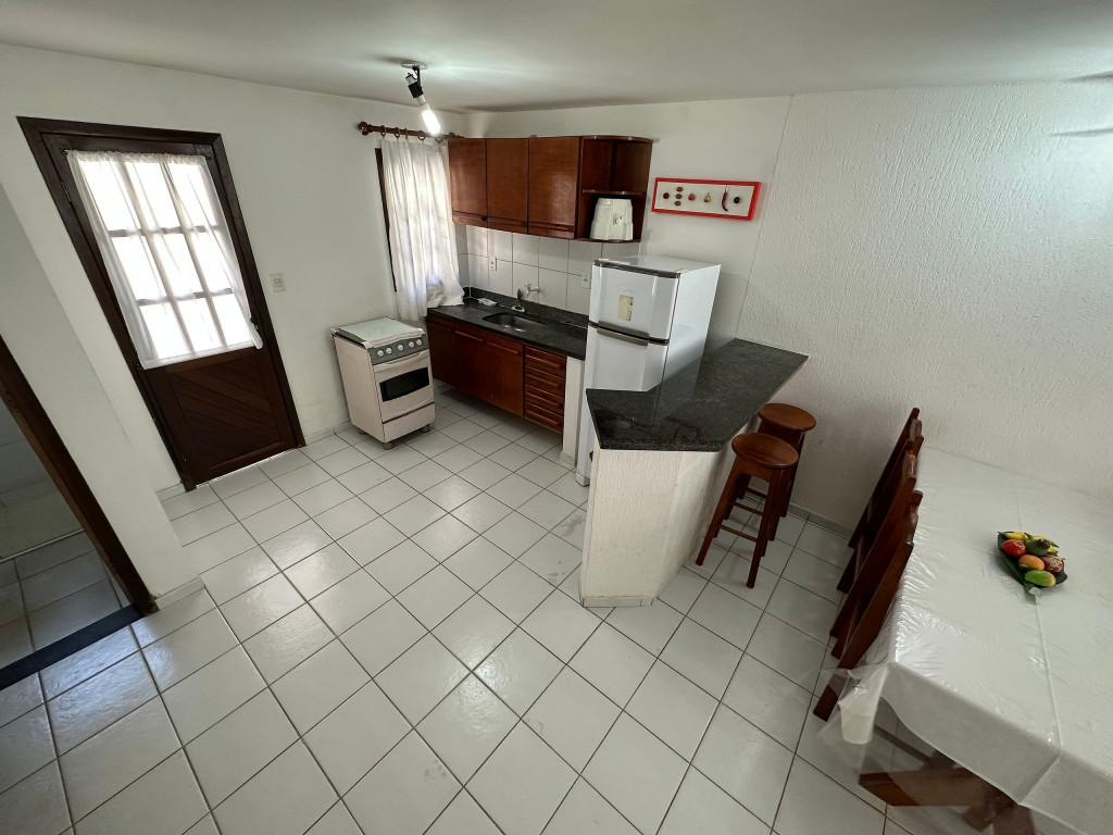 A cozinha é bem completa e oferece eletrodomésticos como liquidificador, micro-ondas,