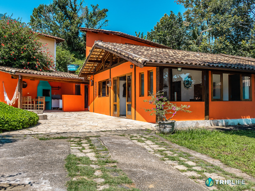 Uma casa decorada com mandalas feitas à mão, em uma rua tranquila, mas perto de tudo, ficando há 10 minutos a pé da Praia Grande de Ilhabela e 15 minutos a pé da Praia do Curral. Além disso fica na rua do mercado e da farmácia ????