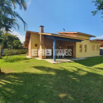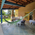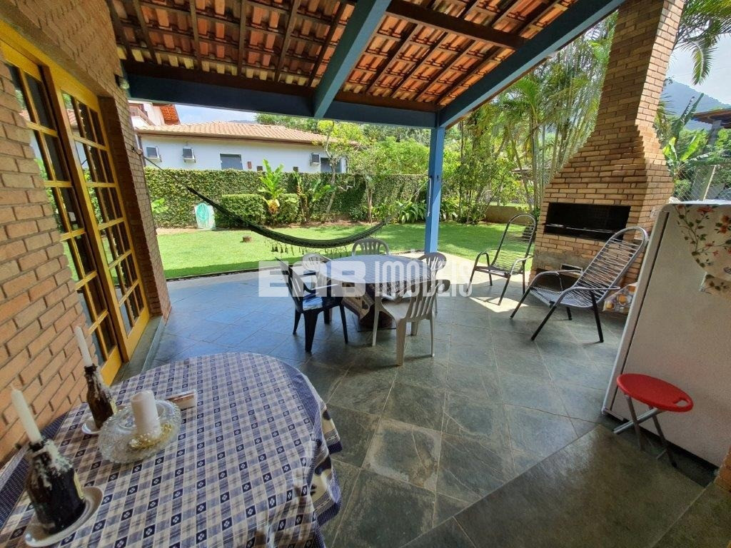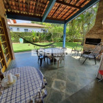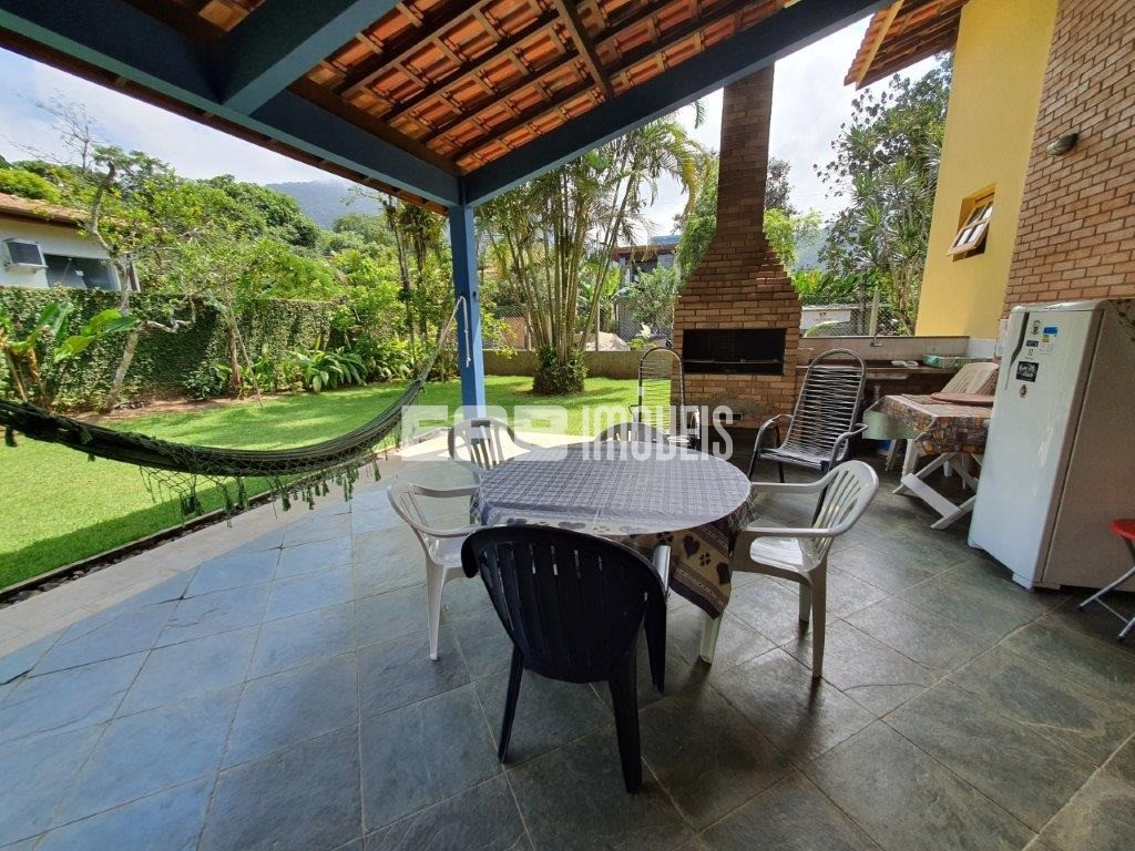A varanda com churrasqueira, voltada para o gramado verde e extenso, comunica-se com a sala e a cozinha e é o lugar preferido da casa, onde todos se encontram depois da praia, que fica a poucos passos da casa.
