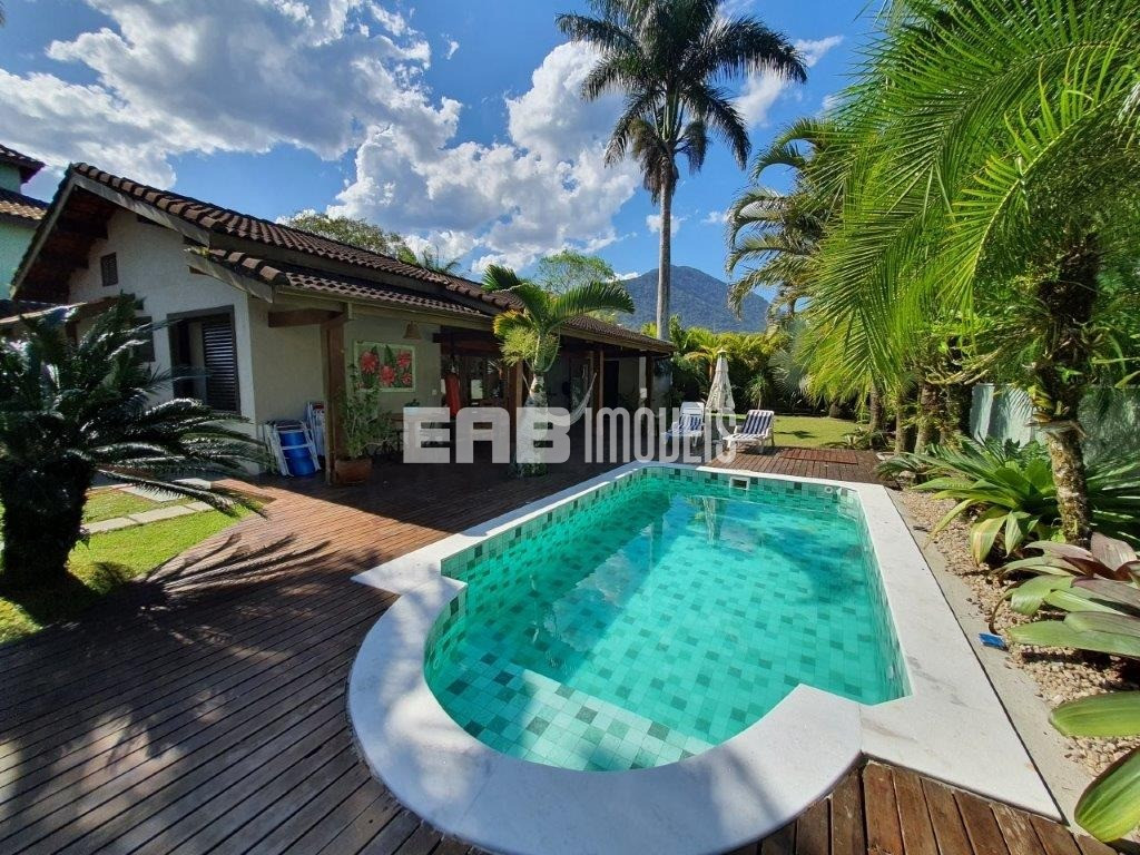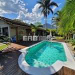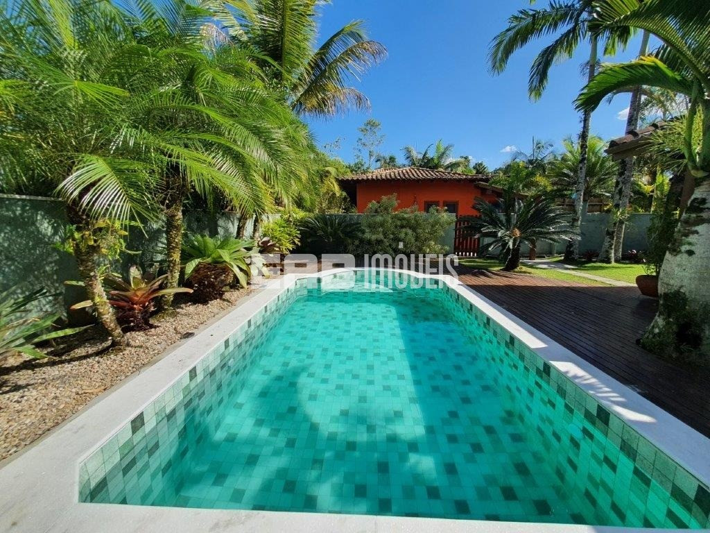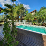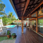 Linda casa de praia com piscina, a cerca de 290m do mar. Ampla área social, com vários ambientes, que se abrem para um maravilhoso deck com varanda e piscina, valorizado por projeto paisagístico.