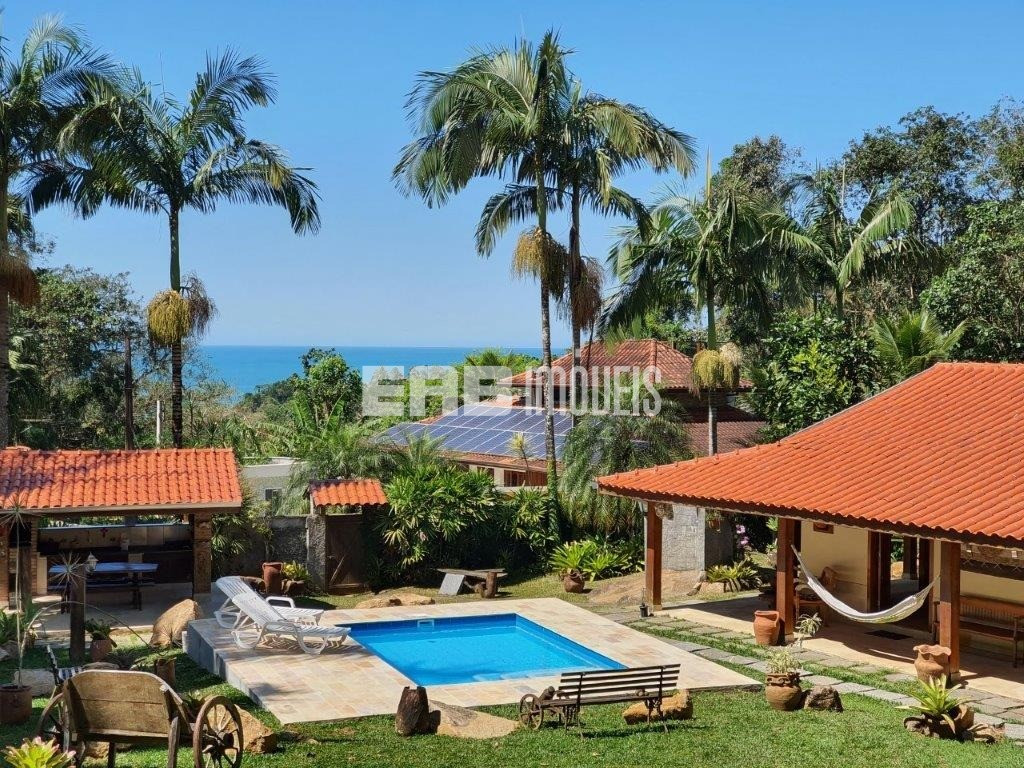 Linda casa com vista para o mar, encravada em amplo terreno da Mata Atlântica, com total conforto.