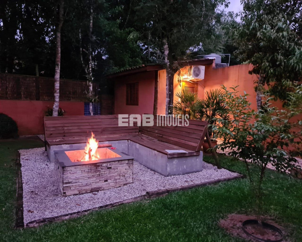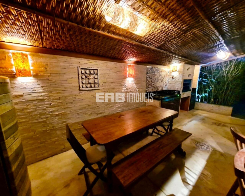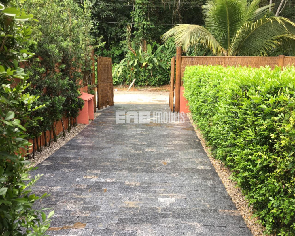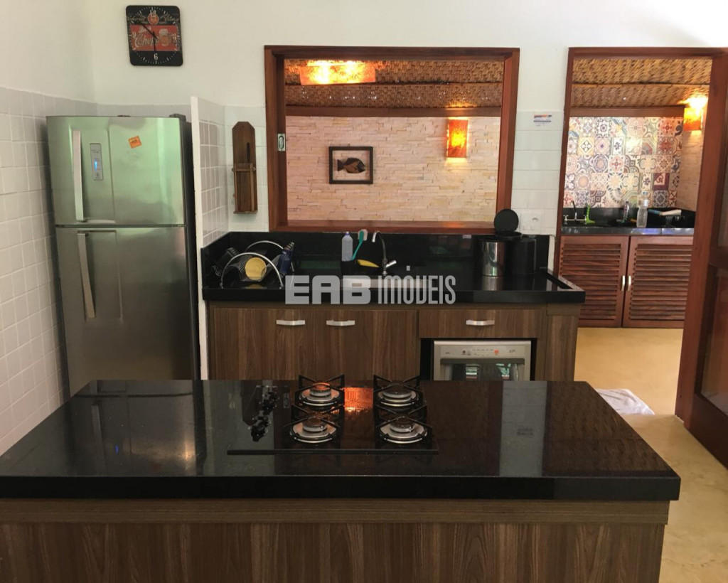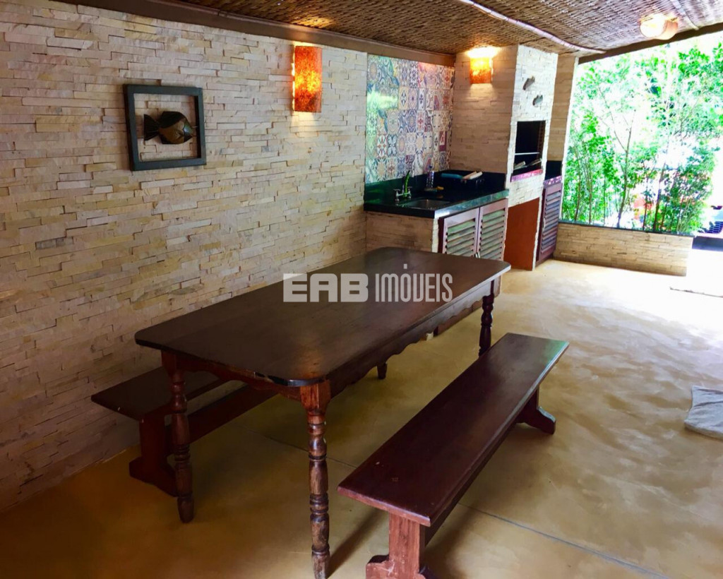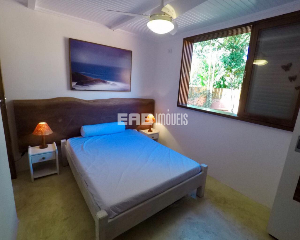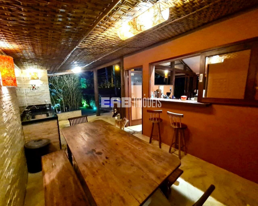 Por uma trilha atrás da casa, ou pela rua principal, são apenas 3 minutos para se chegar à praia. A área de convívio compreende sala com cozinha integrada que se estende até à varanda com churrasqueira e piscina, de onde se observam os pássaros coloridos que visitam o local.