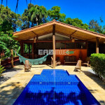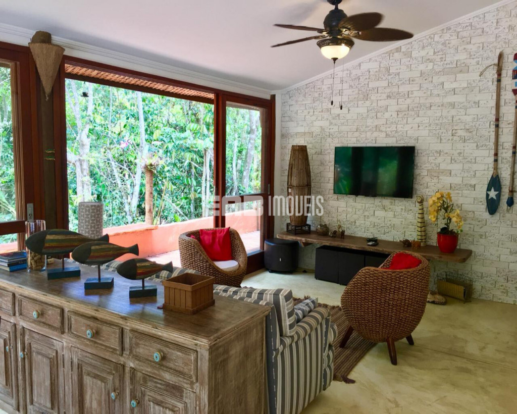 Linda casa de praia, localizada numa rua verde e pacata do condomínio do Prumirim. Ao lado da Mata Atlântica, que praticamente debruça sobre os ambientes, encanta pelo clima tropical e arquitetura bem praiana.
