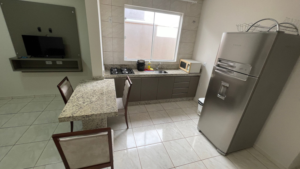 Casa nova construída e mobiliada para locação por temporada, em bairro próximo a Itaipu Binacional e outros atrativos da cidade. O espaço conta com dois quartos com cama de casal, ambos com ar condicionado novos, sofá cama na sala, Tv smart, wi-fi de 150mb, banheiro, cozinha equipada, garagem coberta para até dois carros, portão eletrônico e alarme monitorado.