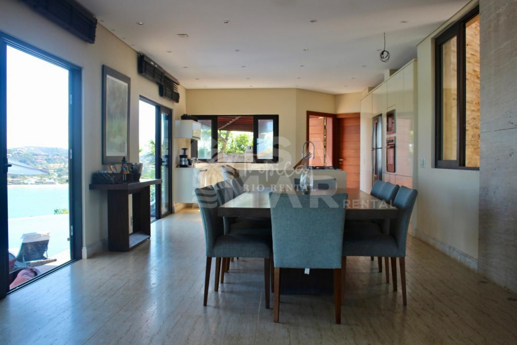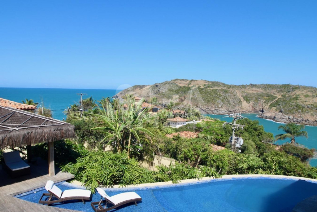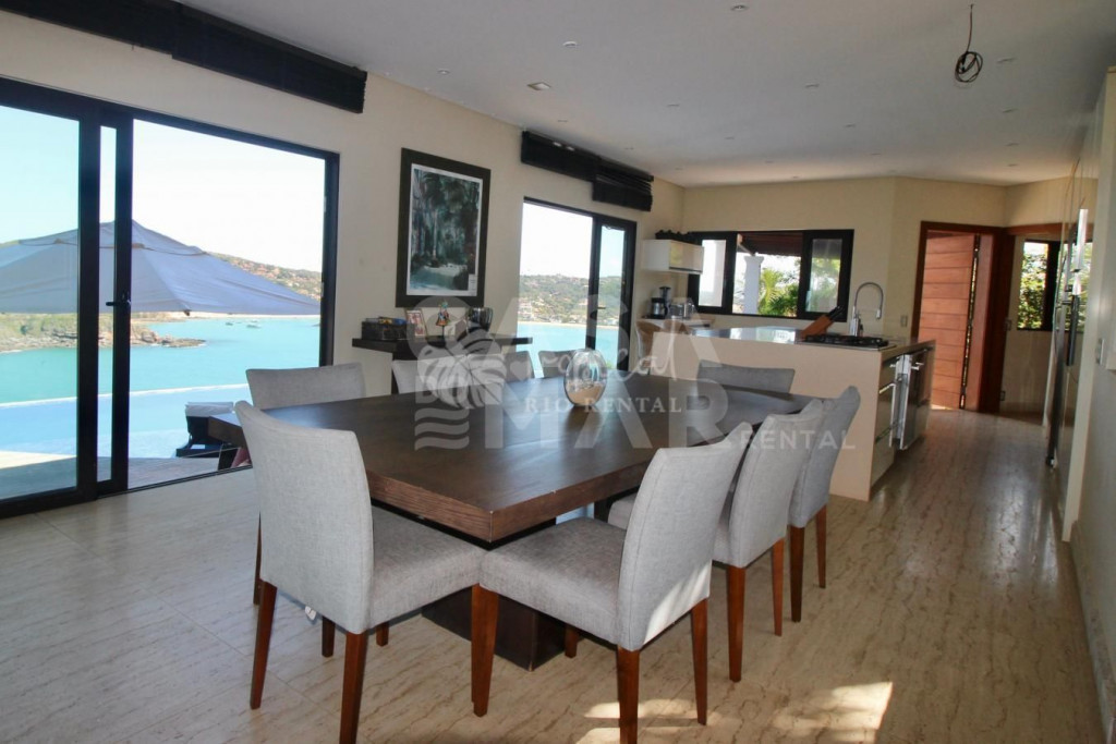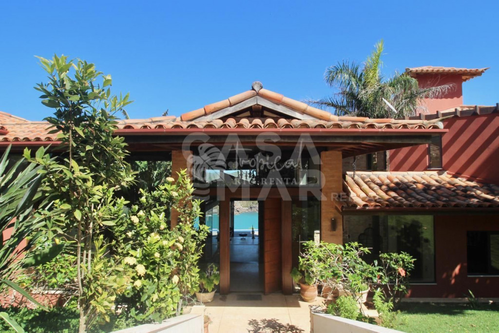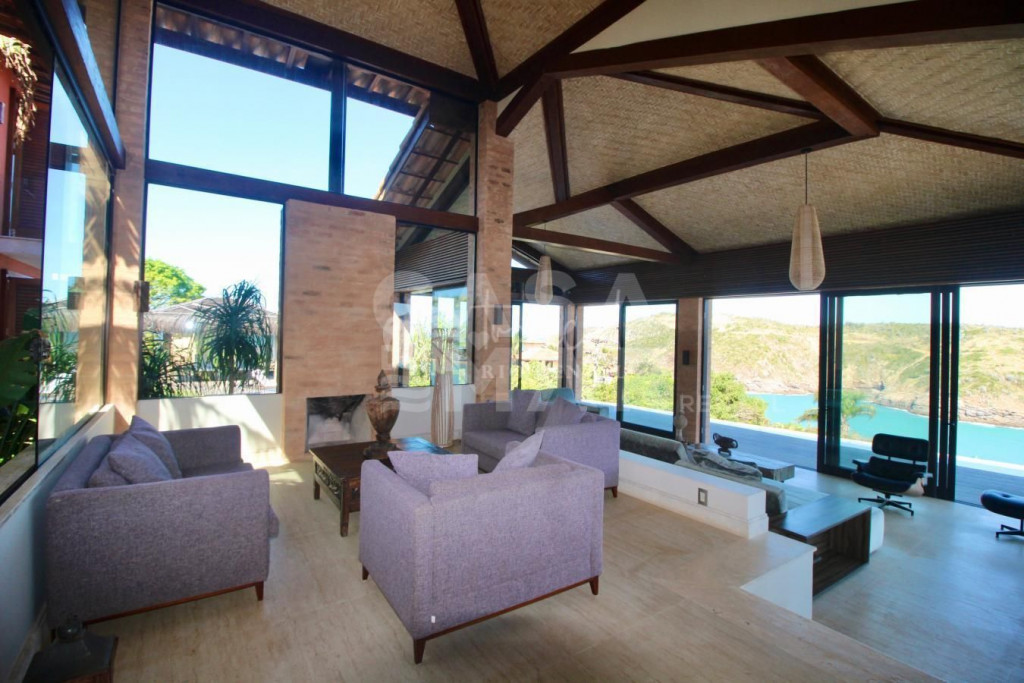 Essa mansão é um projeto do Guido Campanate, se extende sobre dois lotes de frente para a Baia da Praia da Ferradura, com vista privilegiada panorâmica de Búzios. A casa é dividida em duas estruturas - a da casa principal e a da casa de apoio aonde fica 4 suítes.