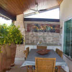 A casa tem uma garagem que cabe dois a quatro carros, dependendo do tamanho dos carros.