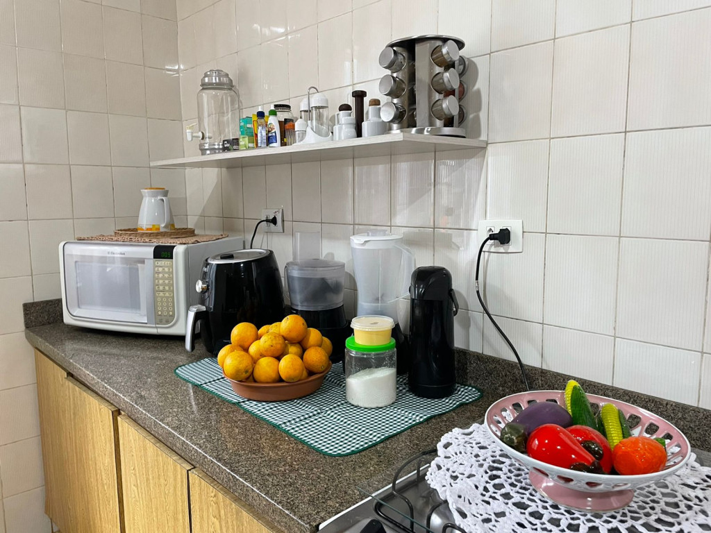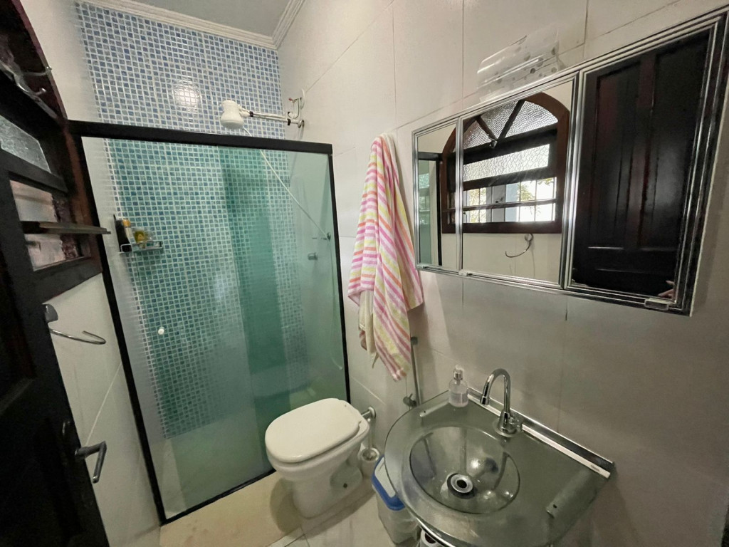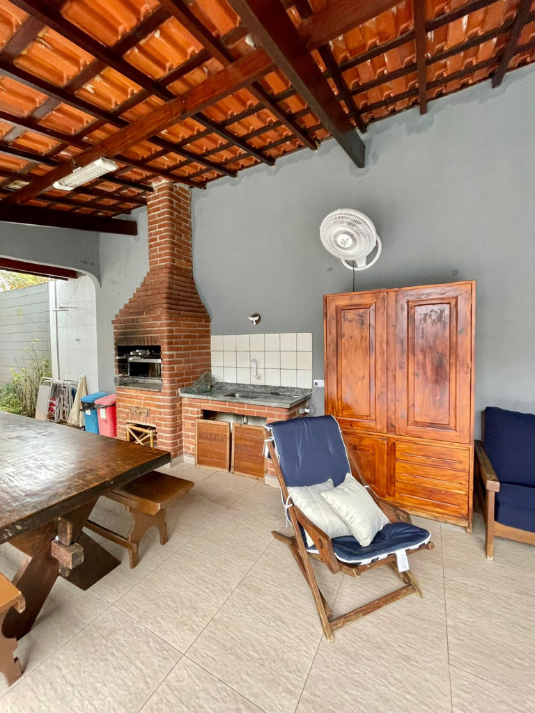 Sala, cozinha completa, 3 banheiros contando com a suíte, 1 lavabo, churrasqueira, piscina e chuveirão externo.