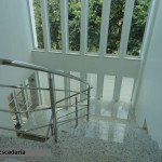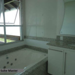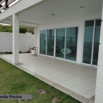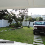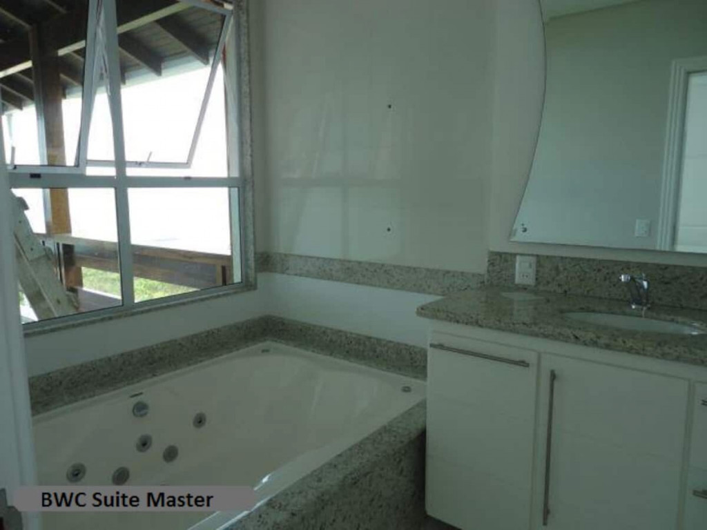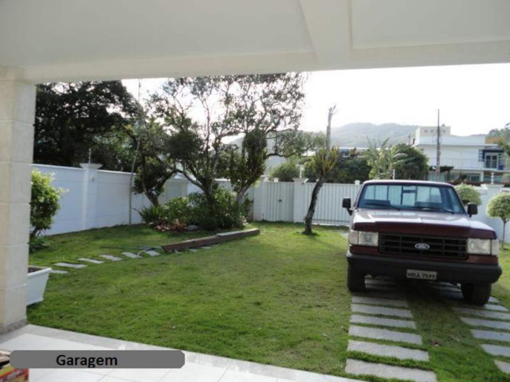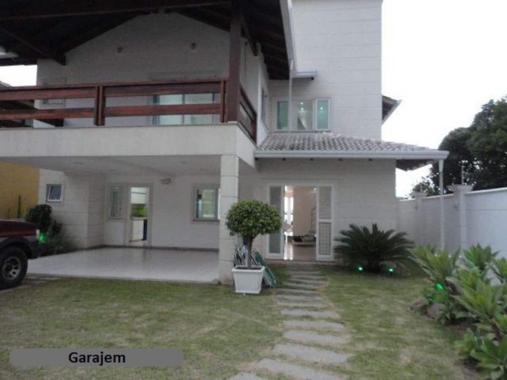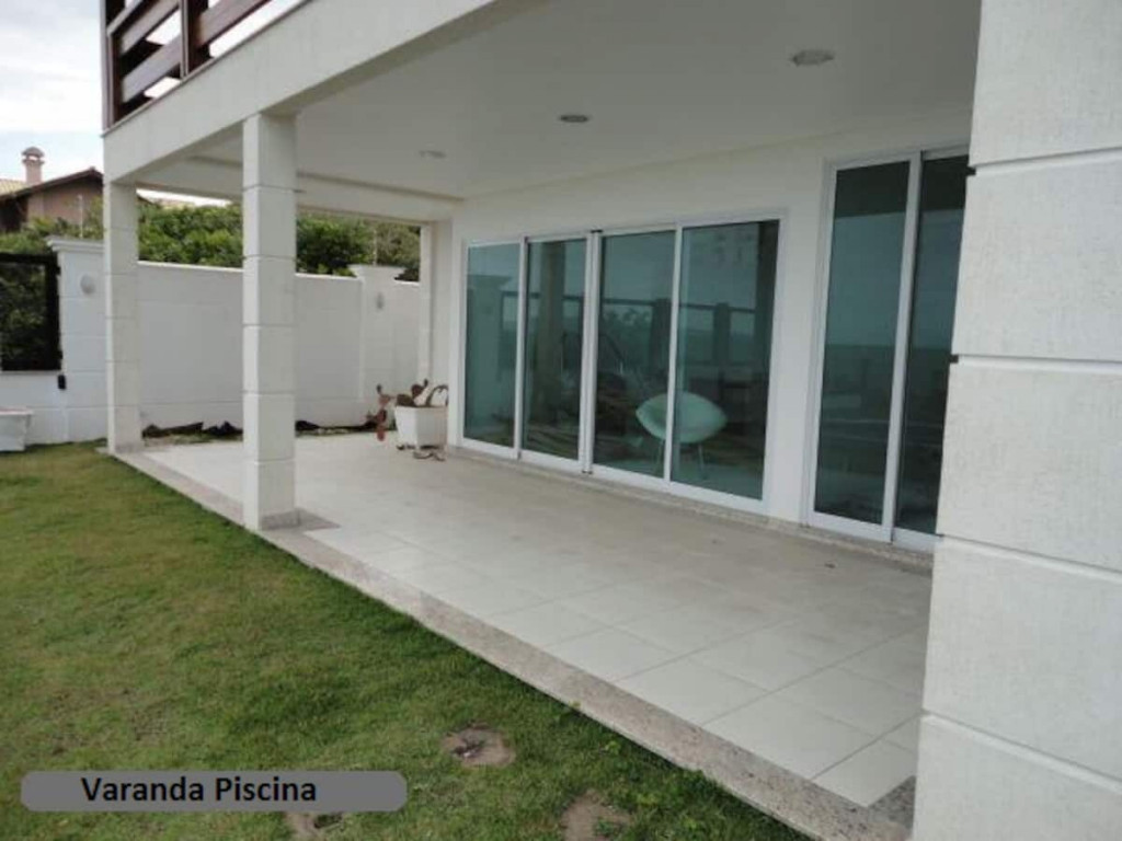 Casa construída em alvenaria com 463 m2, pintada com tinta acrílica semi-brilho, portas em madeira laqueada, esquadrias em alumínio com vidro verde, piso cerâmico em todos ambientes, telhas em concreto da Tégula, contendo: