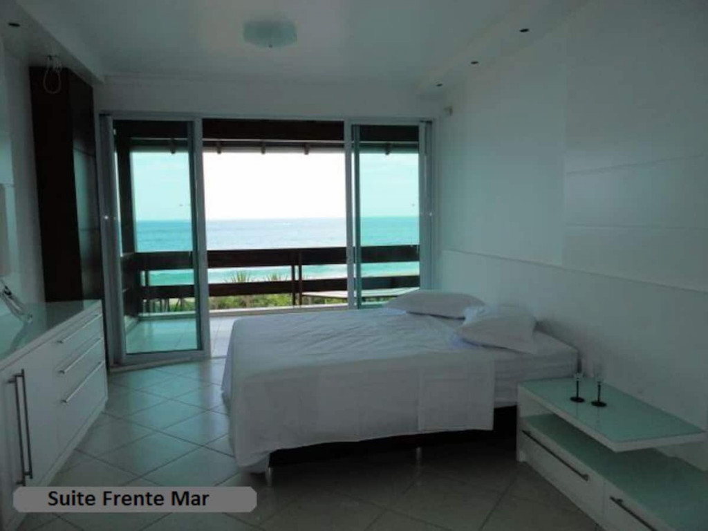 4 Quartos, sendo 3 suítes e uma delas com Banheira com hidromassagem. De frente para mar, e um deles com duas camas de casal, todos os quartos com TV Led;